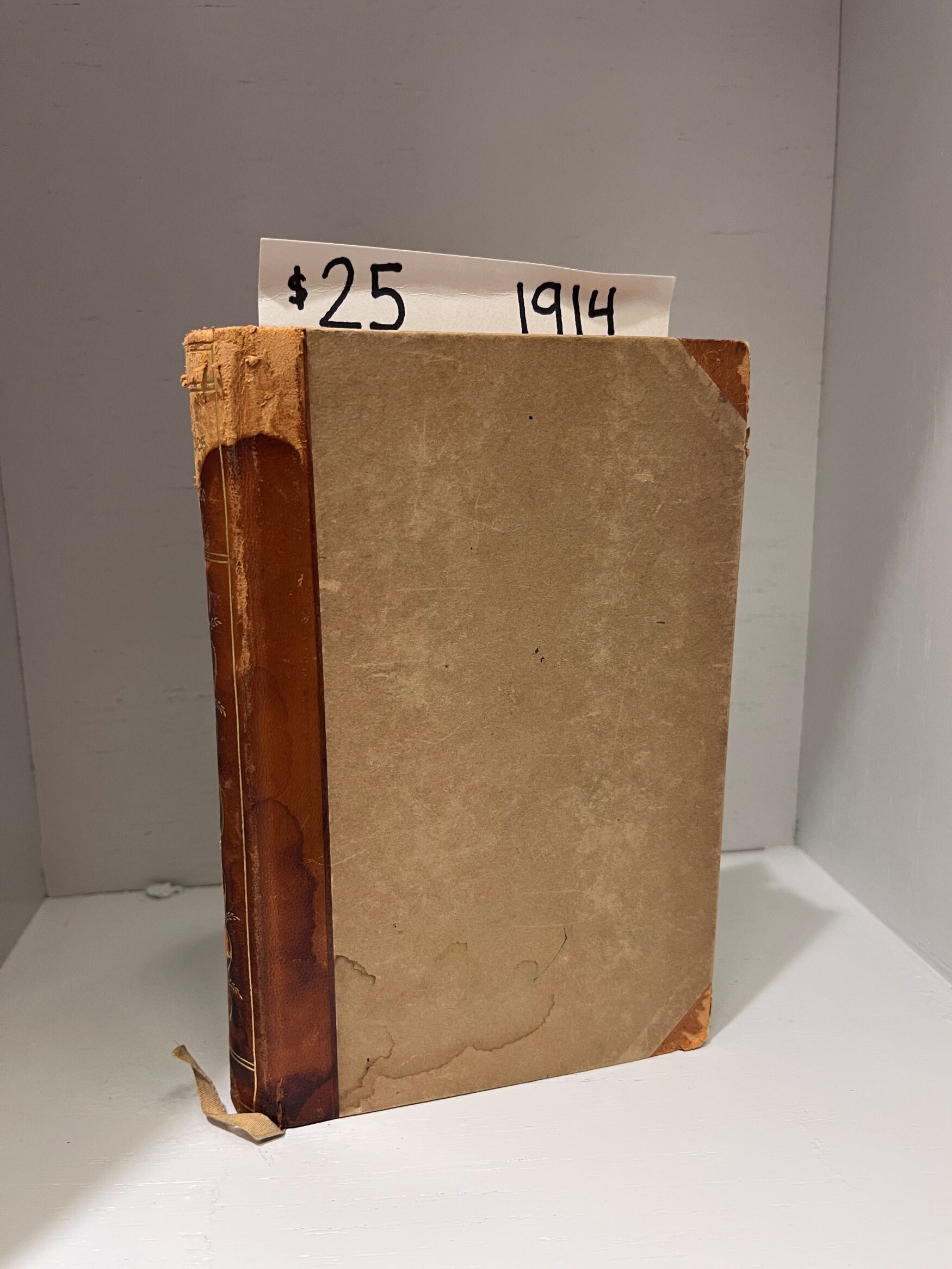 The cover on this book is pretty damaged, the edges are peeling and cover has some stains as well. The edges of the pages also have some stains and scratches but the inside of the pages are in great condition. The ribbon bookmark also has some creases