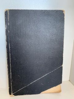 This is a black softbound and its in fair condition. The front cover is torn at the bottom and has a crease. There are some scuff marks and damage to the book and cover. The bottom pages are bent up on the bottom.