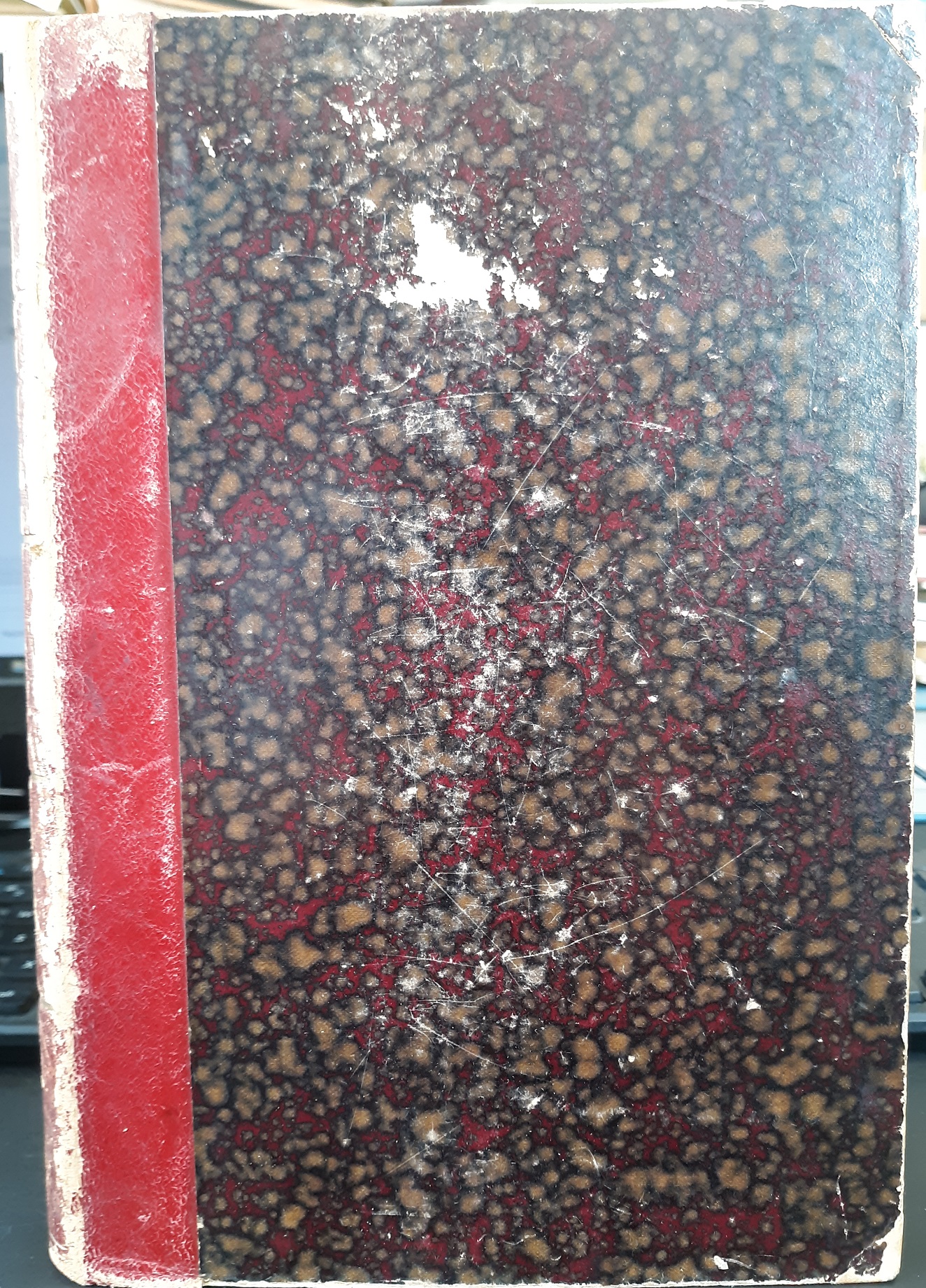 Fair condition, 1/2 leather book with a brown-red spine. The spine has heavy wear, and the cover has some tears and scratches. The corners and edges have some minor fraying. The inside back cover has an old sticker. All the pages have yellowing from age. The fly leaf has some pencil marks. Text throughout is clean, clear, and legible…………………………………v1 Bx328