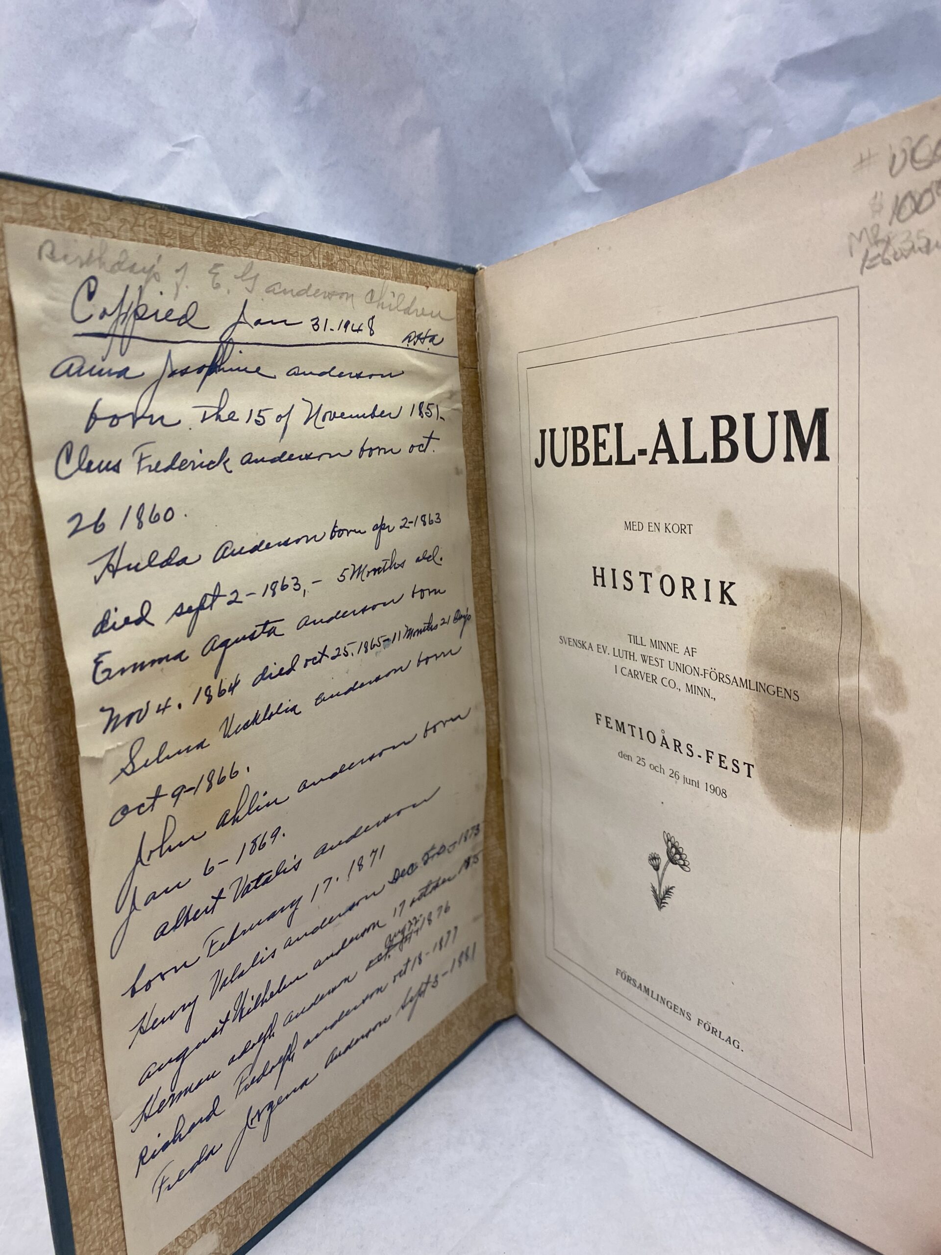 Jubilee Album, West Union Congregation in Carver in Swedish, June 25-26 1908. Hardcover, 1908.