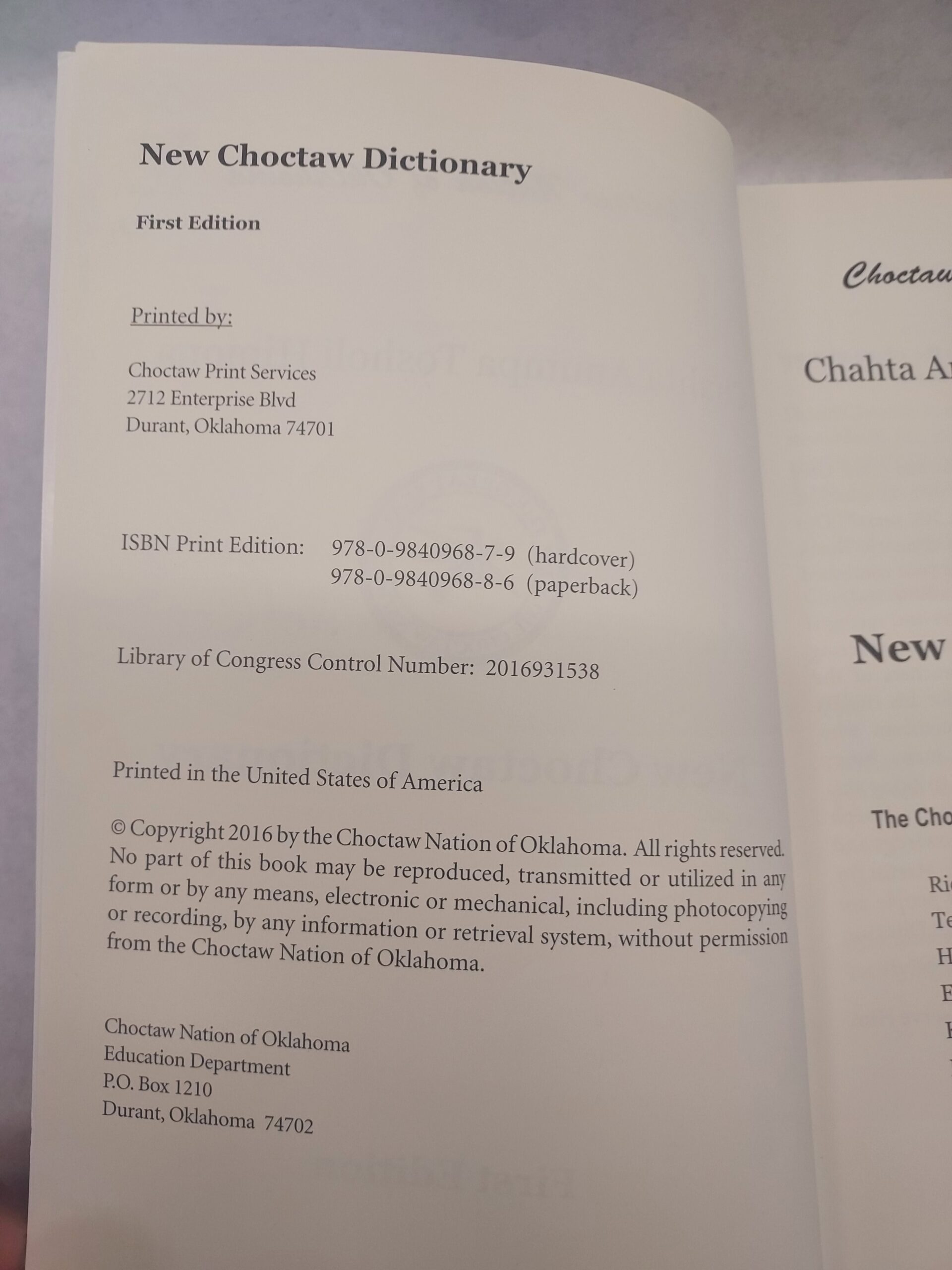 New Choctaw Dictionary-paperback-2016
