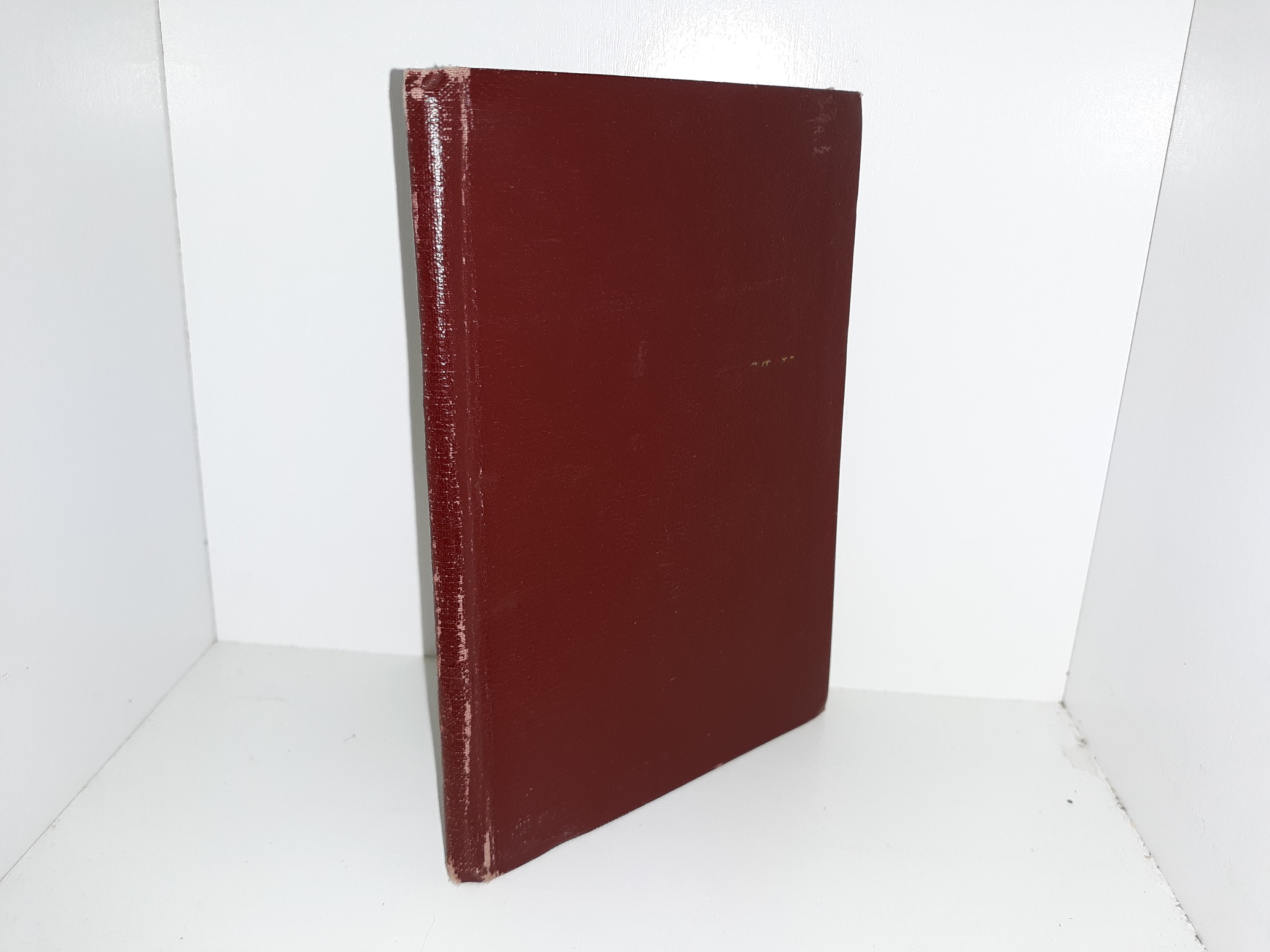 Fair condition, small, thin, maroon hardcover with no dust jacket. The cover has dents, scuff marks, scratches, and some wear at the corners and edges. The front flyleaf has writing in pen, pencil, and eraser marks. The back inside cover has a large sticker, and writing in pencil. Text throughout is clean, clear, and legible.