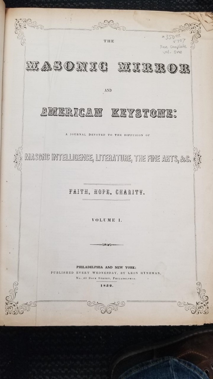 1852 — The Masonic Mirror & American Keystone: A Journal Devoted to the Diffusion of Masonic Intelligence, Literature, & Fine Arts, Etc. Faith, Hope, Charity — Volume 1