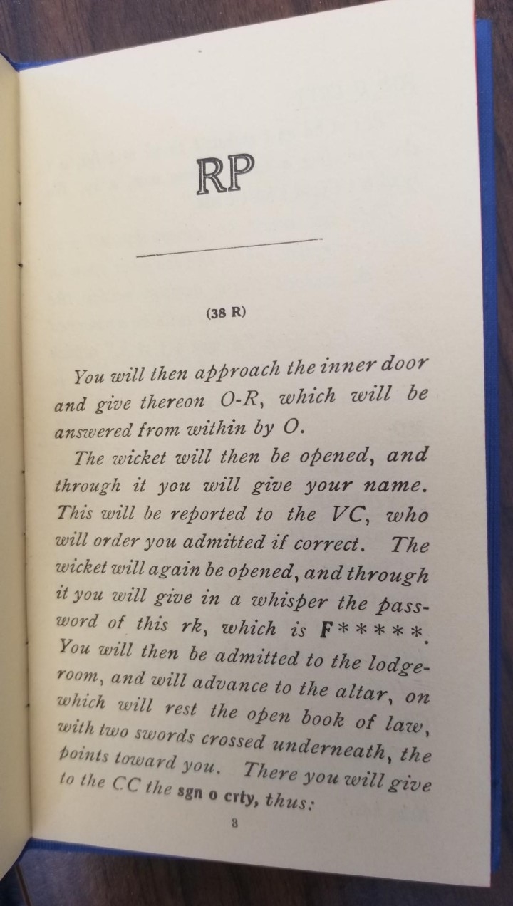 1912 — Rare Little Freemasonry Book — How To Enter… “You will then approach the inner door and given thereon O-R, which will be answered from within by O. The wicket will then be opened….”