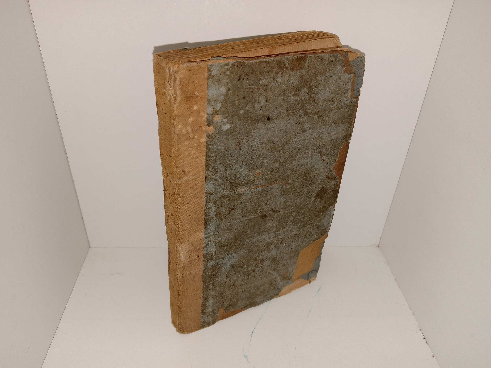 Fair condition, small hardcover with no dust jacket, and with a tan spine. The cover has pieces torn off, stains, tears, scuffing, peeling, creases, and some wrinkling. the internal binding is torn and loose. Some pages have stains, wrinkling, creases, tears, or pieces torn off. The inside covers and flyleaves have writing ni pencil and eraser marks.