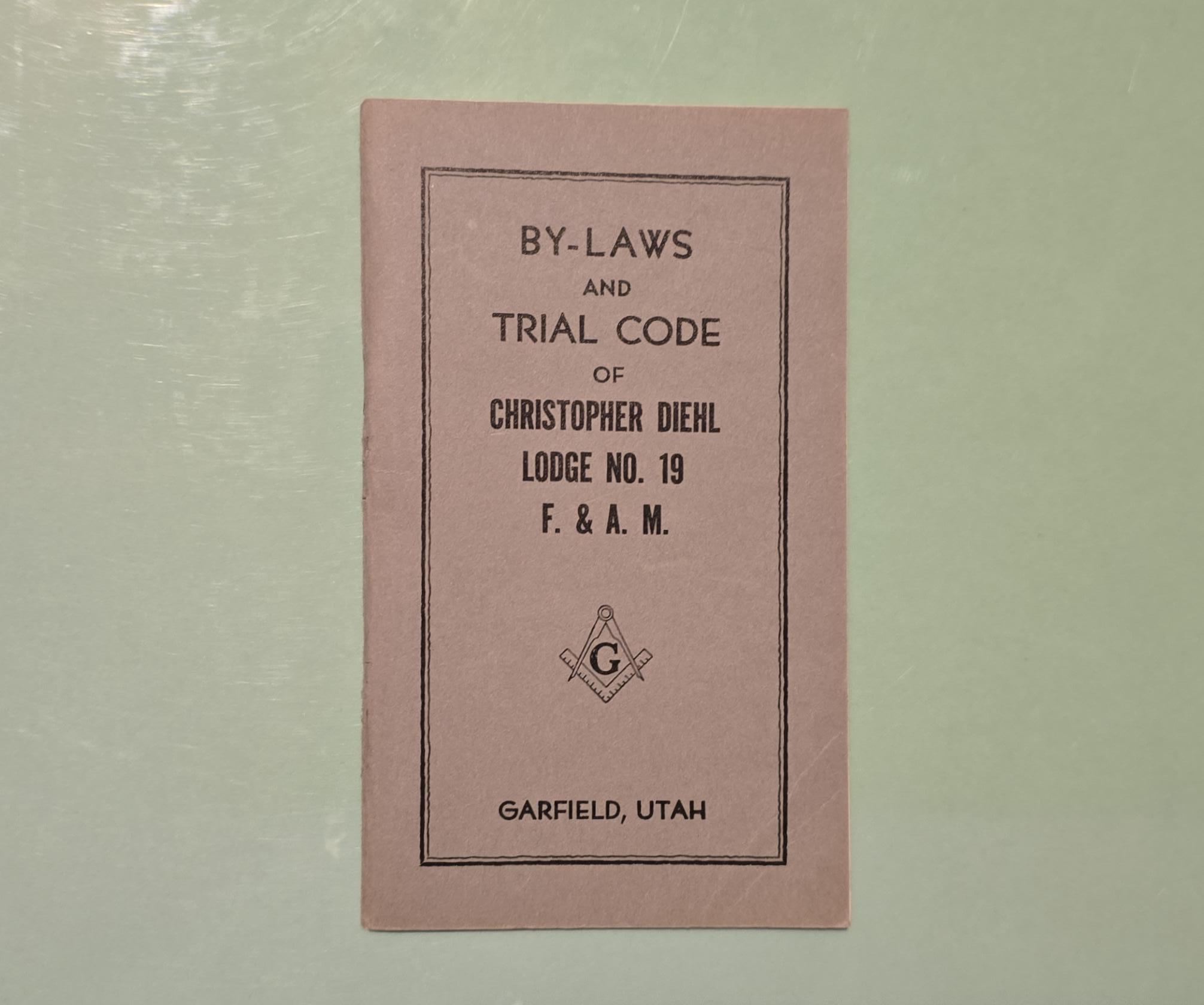By-Laws and Trial Code of Chrisopher Diehl, Lodge # 19 F.&A.M. (1938) Garfield, Utah.