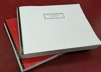 Two large size oblong shaped softcover volumes; plastic velo strip bindings; 2 photo-copied pages sideways on each page. Good to fair.