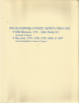 Mecklenburg County, North Carolina: Will Abstracts, 1791-1868, Books A-J; Tax Lists, 1797, 1798, 1799 1806, & 1807 — by Herman W. Ferguson, and Ralph B. Ferguson