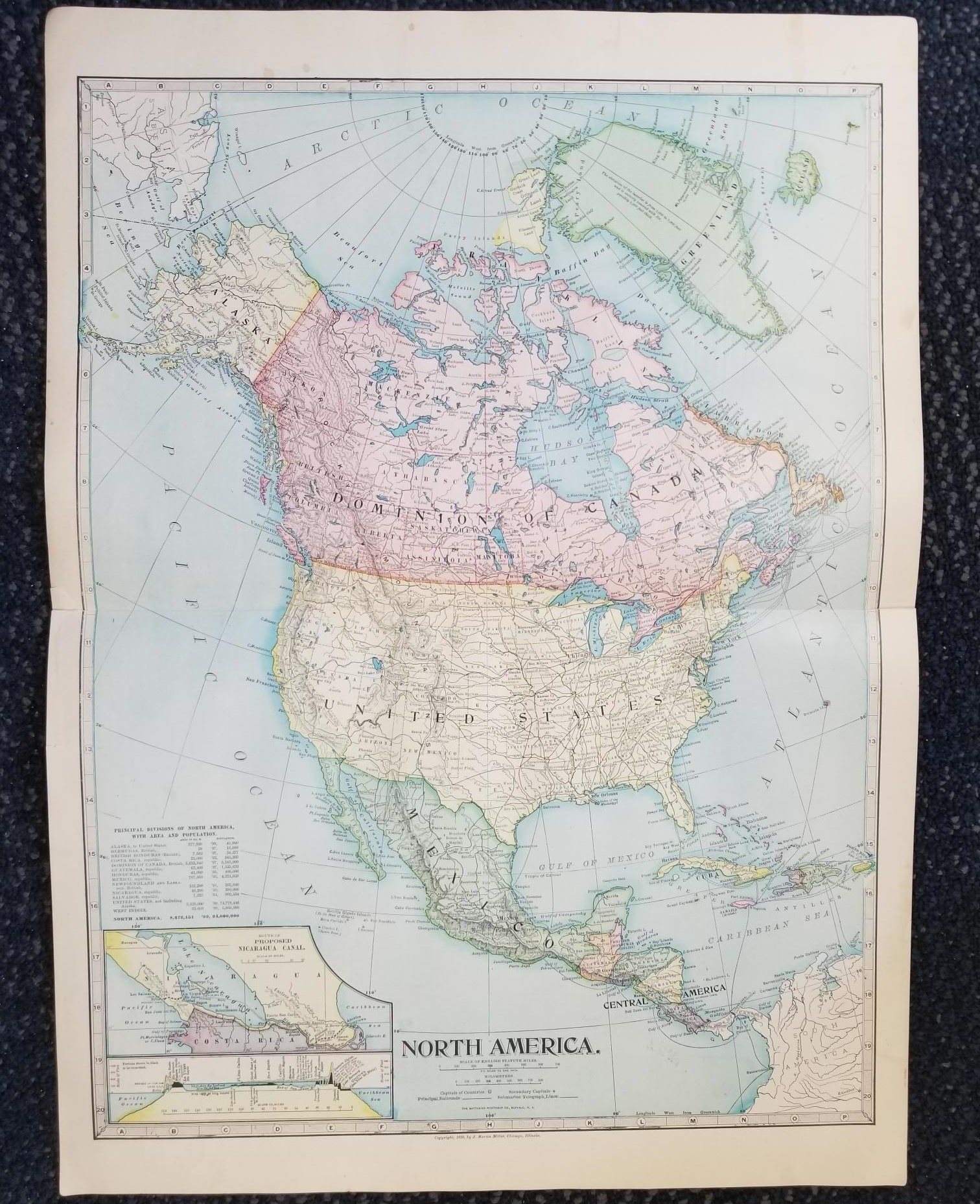 1899 --- Map of North America --- in Color --- Measures 16" x 22" quantity