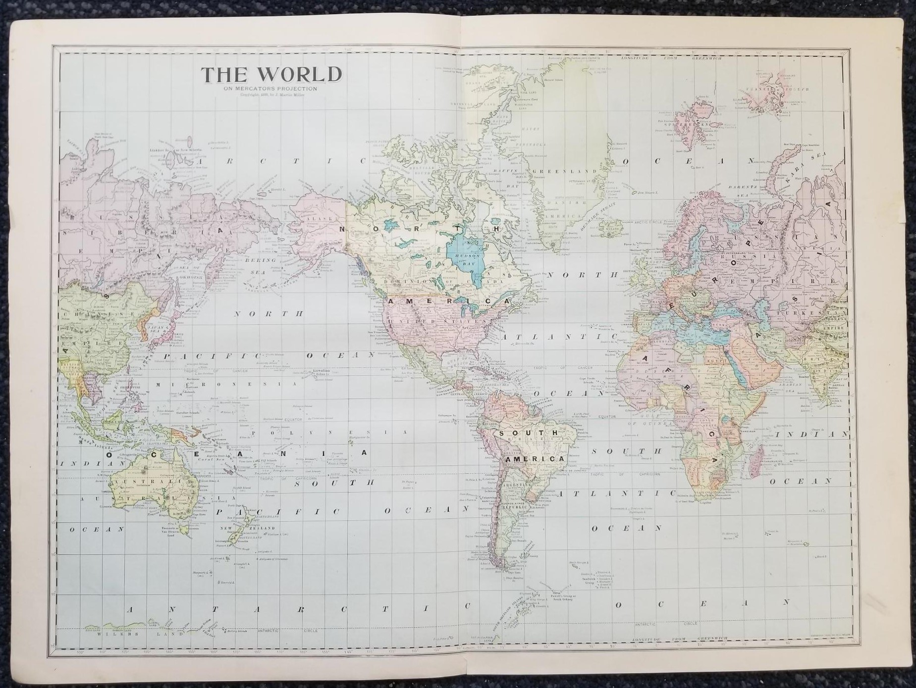 1899 — Map of the World — in Color — Measures 16″ x 22″