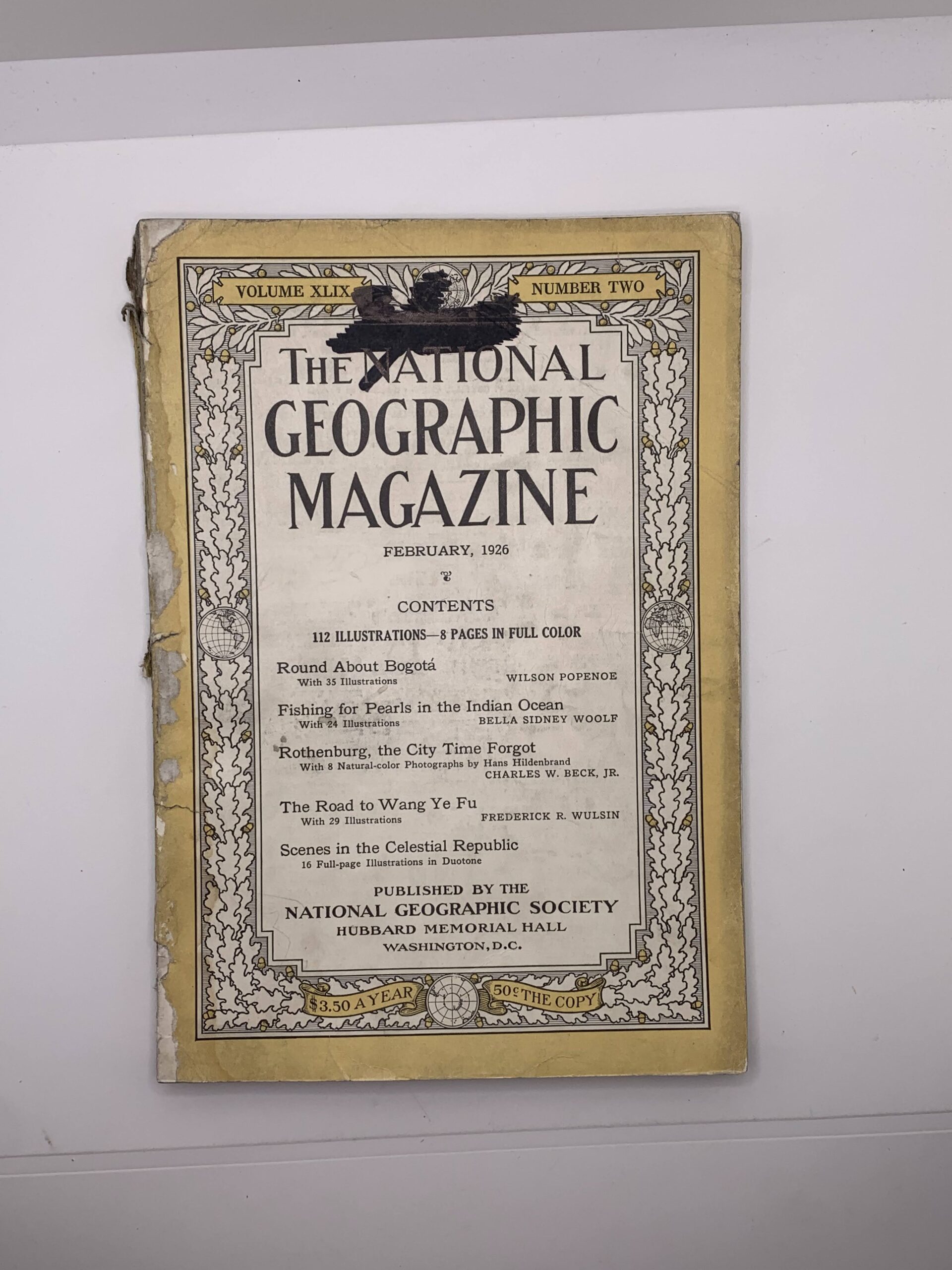 Poor condition thick stapled magazine. The cover has scuff marks, stains, some minor tears, and some fraying and tearing at the corners and edges. The cover has thick permanent marker. Text and illustrations throughout are clean, clear, and legible.