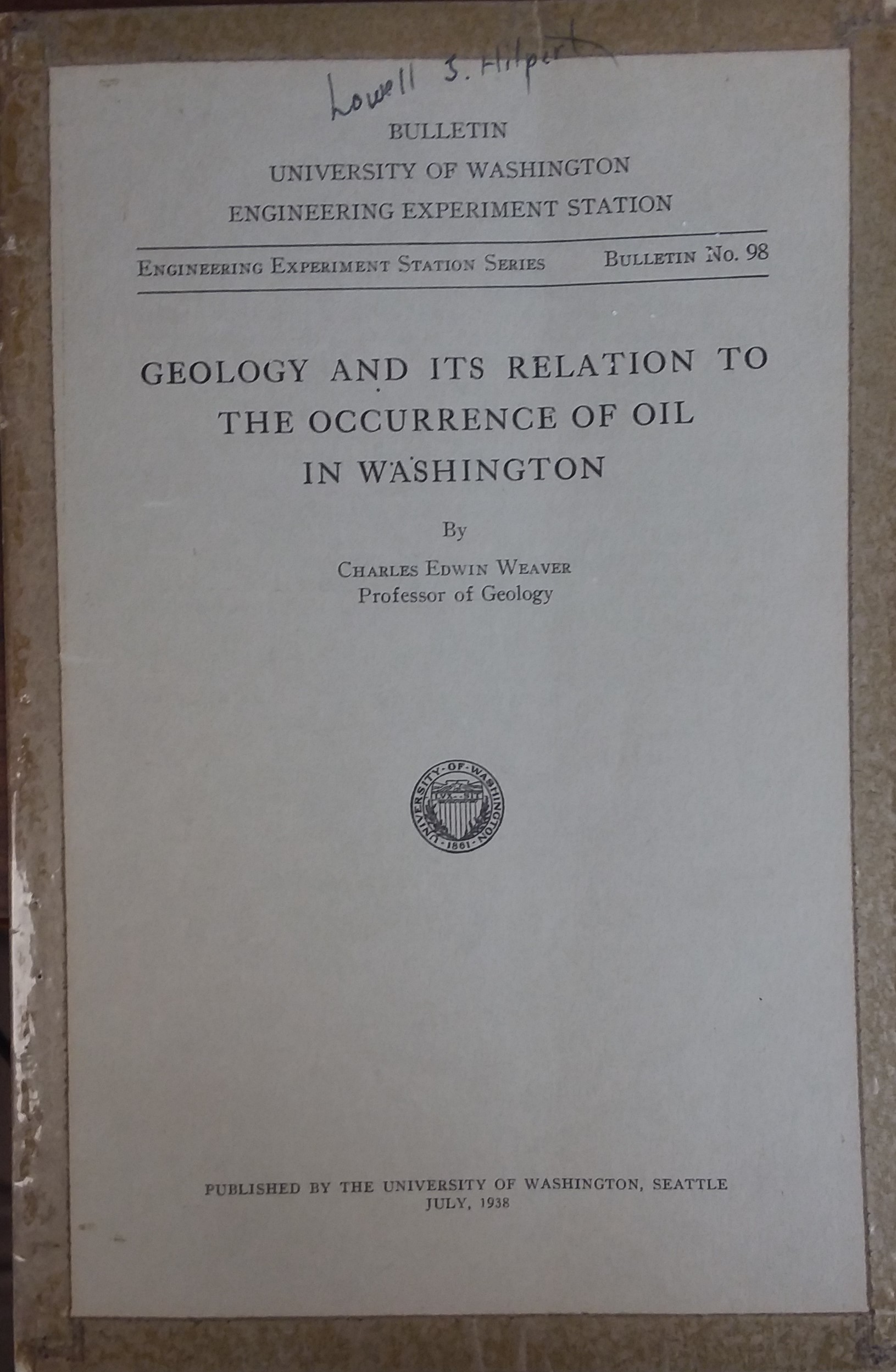 1938 – Geology and Its Relation to the Occurrence of Oil In Washington – Charles Edwin Weaver