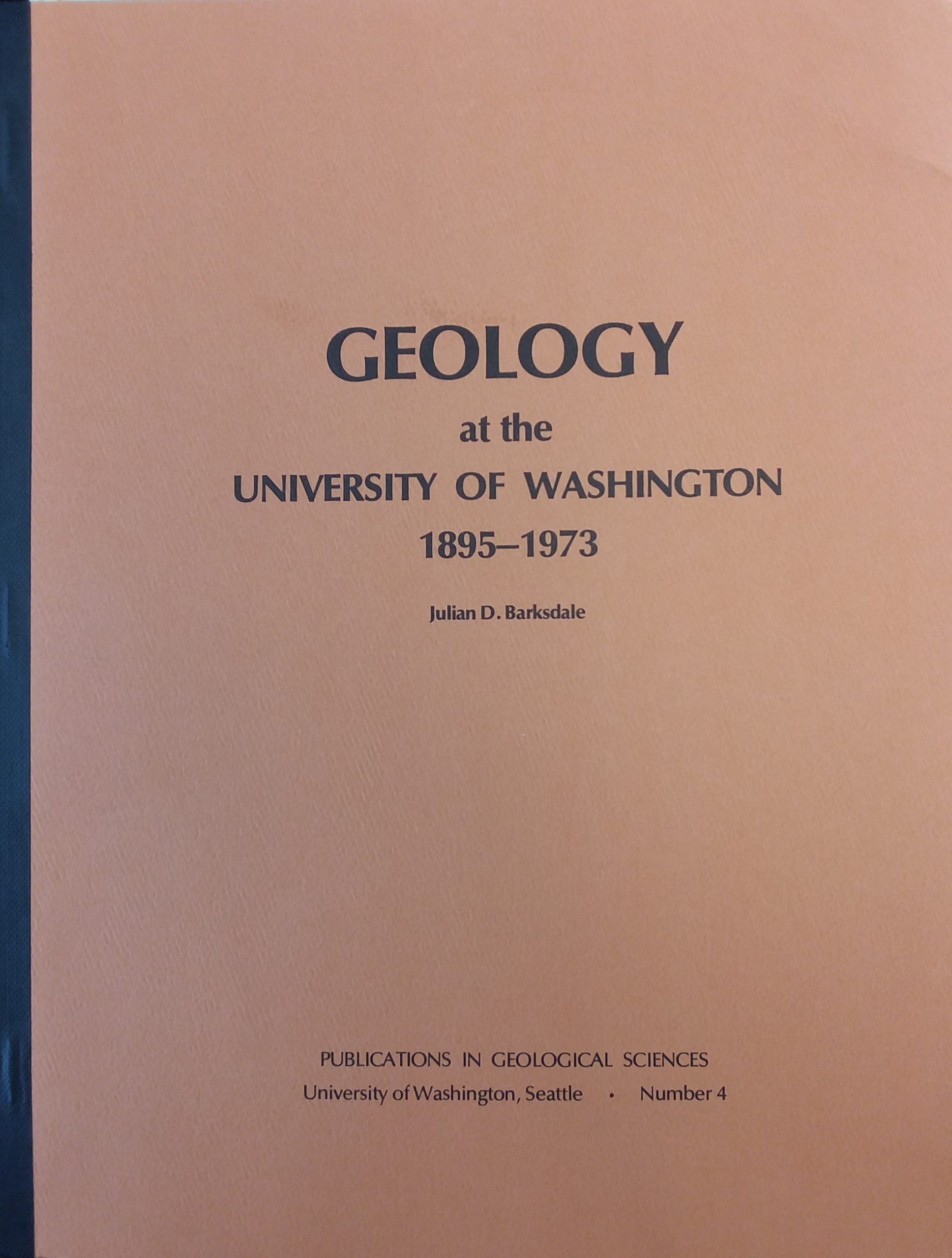 1974 – Geology at the University of Washington 1895-1973 (Signed) – Julian D. Barksdale