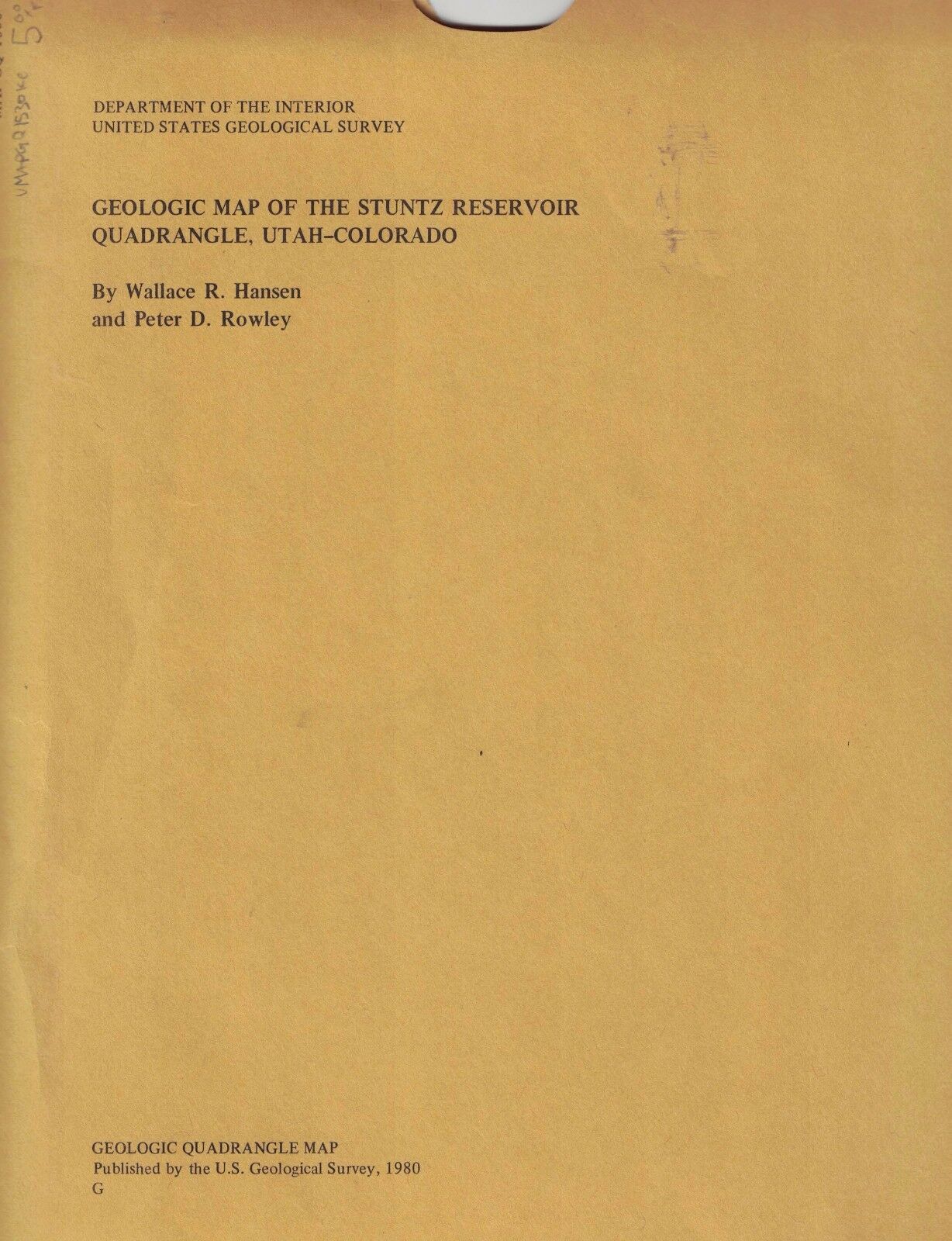 / Geologic Map of the Stuntz Reservoir Quadrangle, Utah-Colorado (Map GQ-1530)