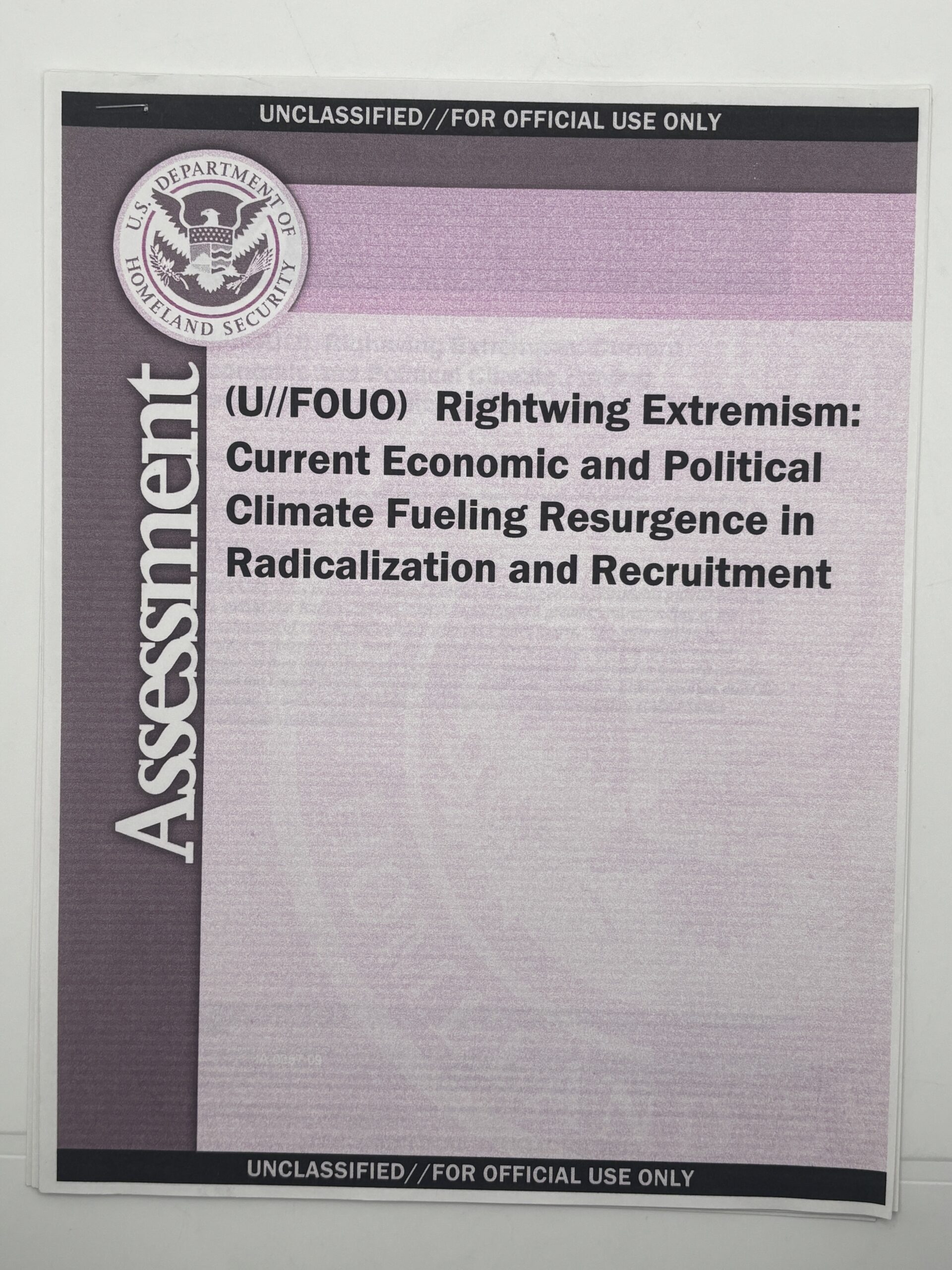 US Department of Homeland Security Assessment on Rightwing Extremism April 7,2009