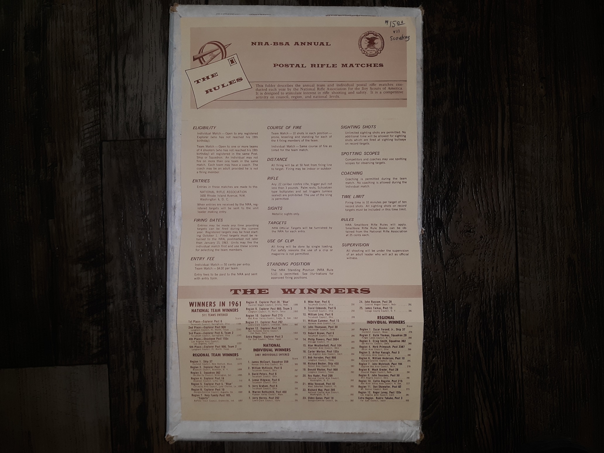 The NRA-BSA Explorer Postal Rifle Match Information and Registration sheet