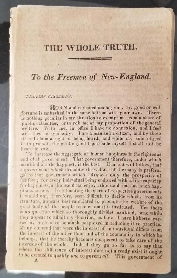 / 1808 — The Whole Truth – To The Freemen of New-England — by “Hancock” — Rare Pamphlet