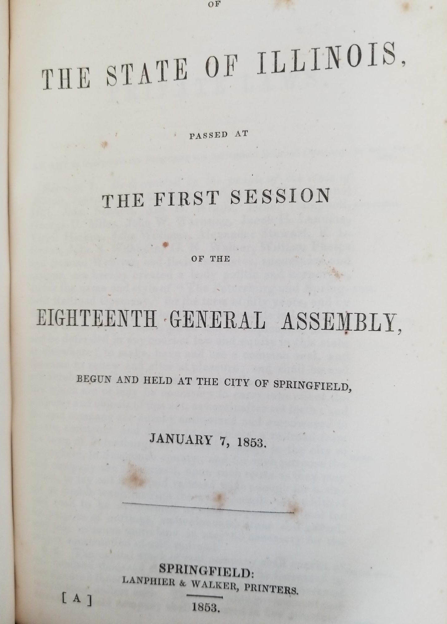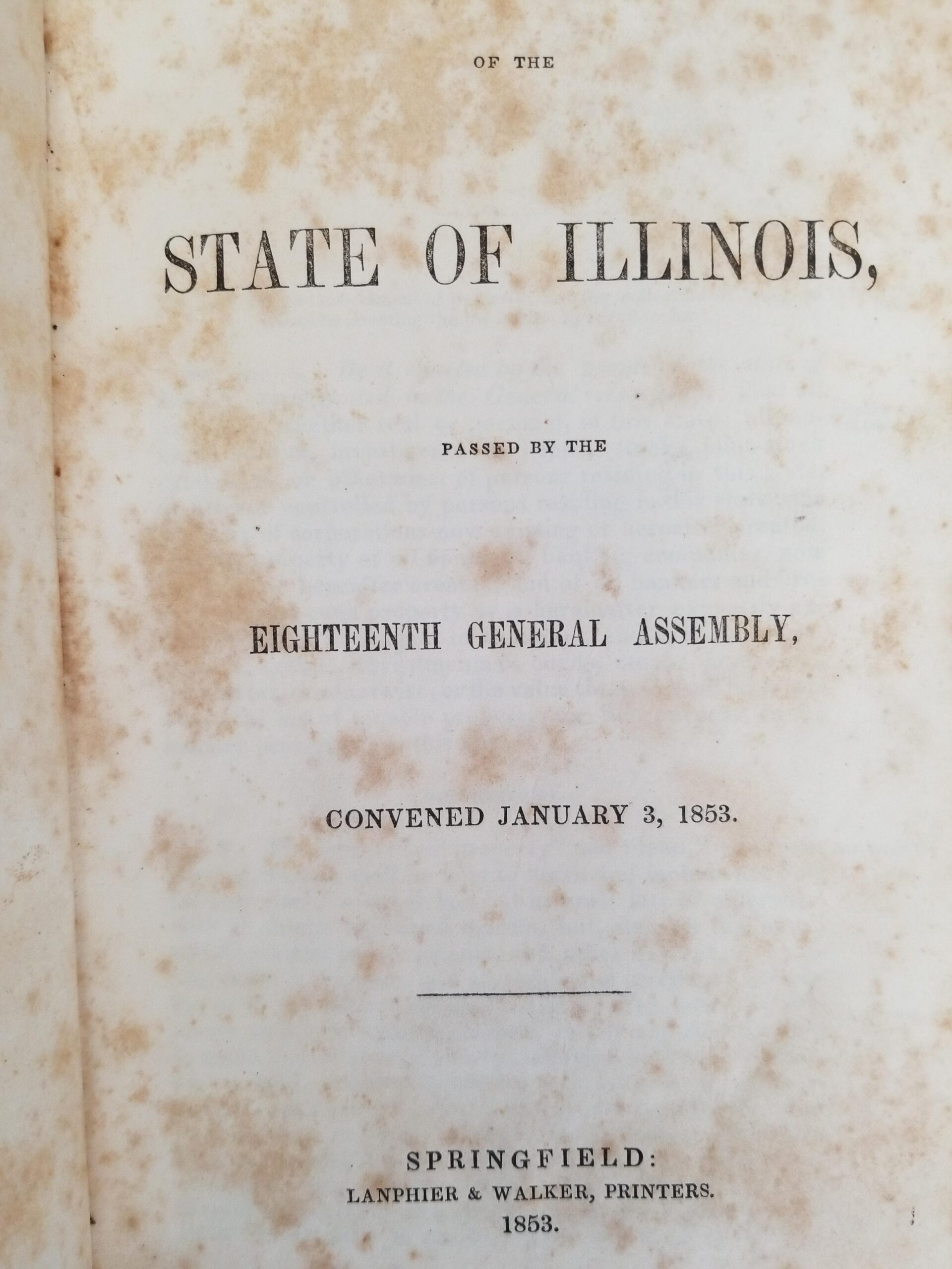 1853 — General Laws of the State of Illinois…. / Private Laws of the State of Illinois — 2 Books Bound Together