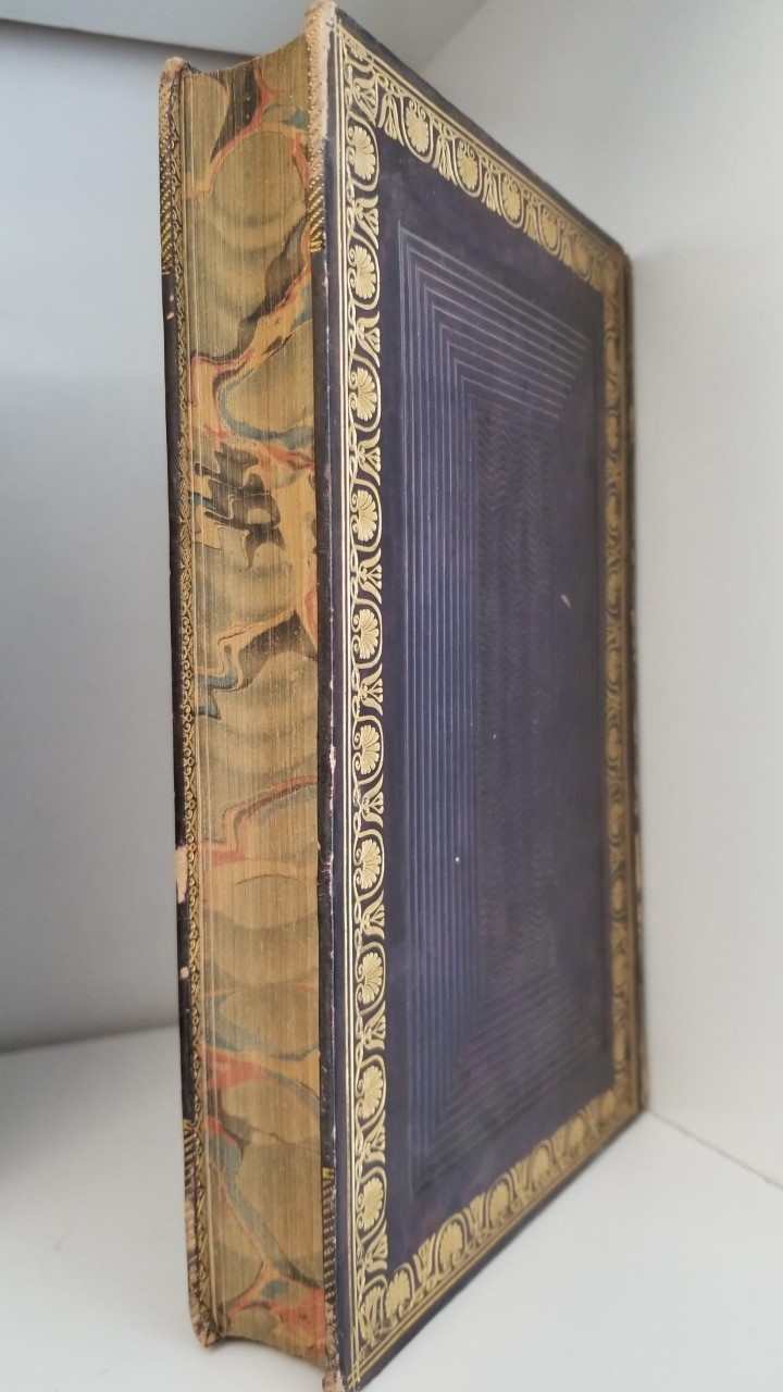 2. John Murray, London, 1822. Spine is very damaged, as seen in the photo, but the boards are absolutely beautiful leather! Marbled end sheets and marbled page edges. Text is clean; fold out is in great condition.