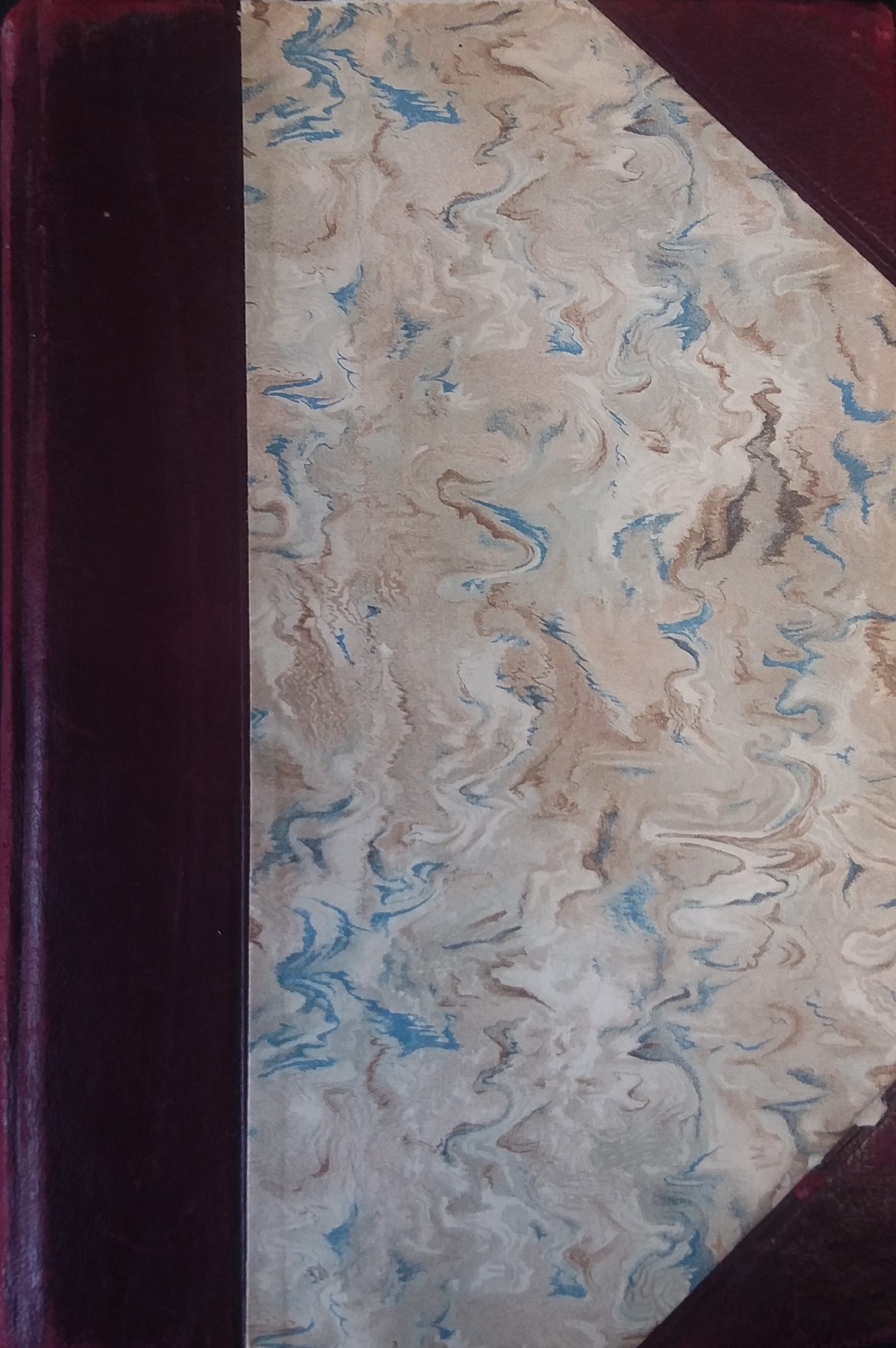 No publication date listed. Tan and maroon hardcover with gold lettering on the spine. Some shelf wear and some scuffs and scrapes on the front and back cover. In fair condition. Some pencil markings and a stamp on the first blank page, otherwise the text throughout is clean, clear, and legible.