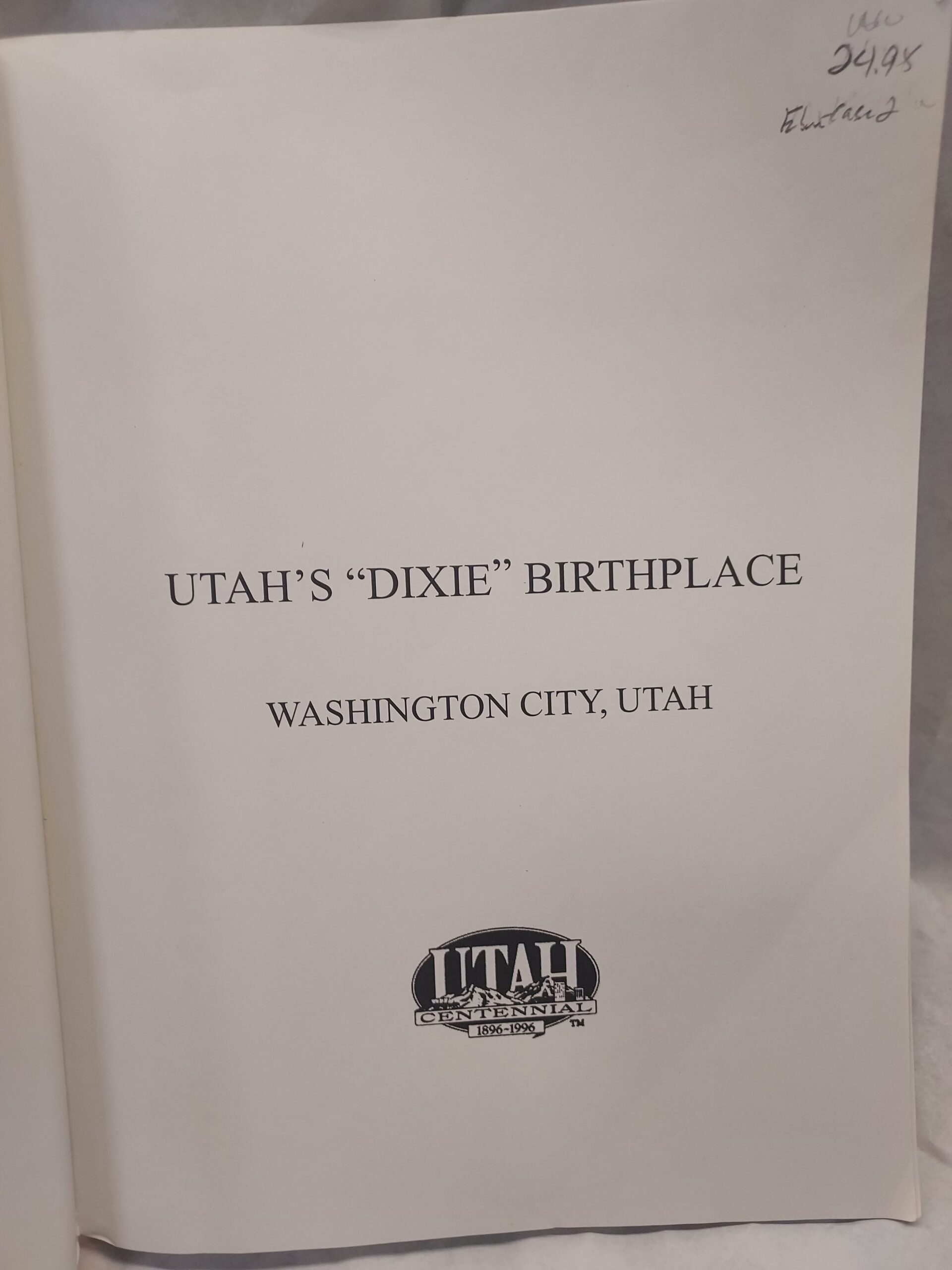 Utah’s Dixie Birthplace-Paperback-1996 Second Edition