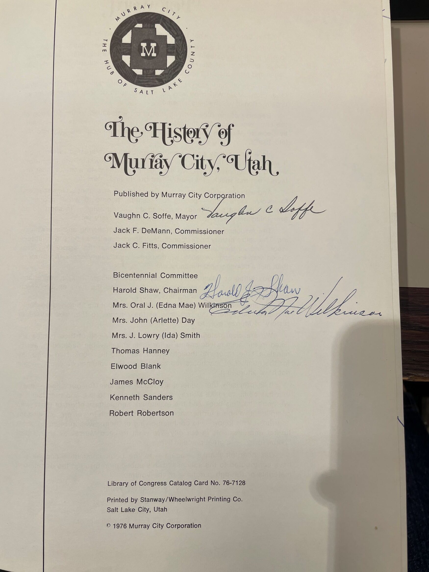 1976 – The History of Murray City, Utah (Various Signatures) – Murray City Corporation – Hardcover