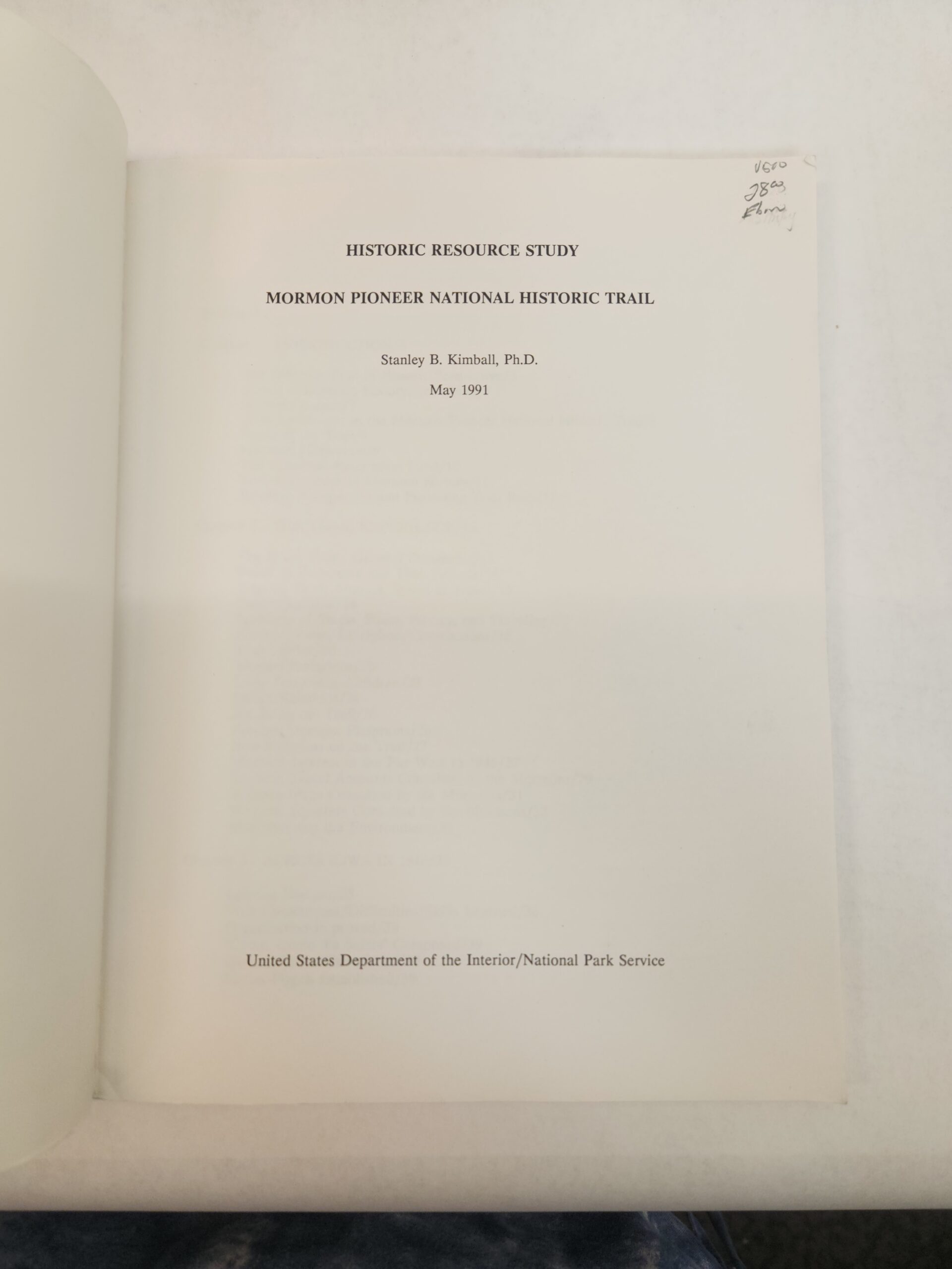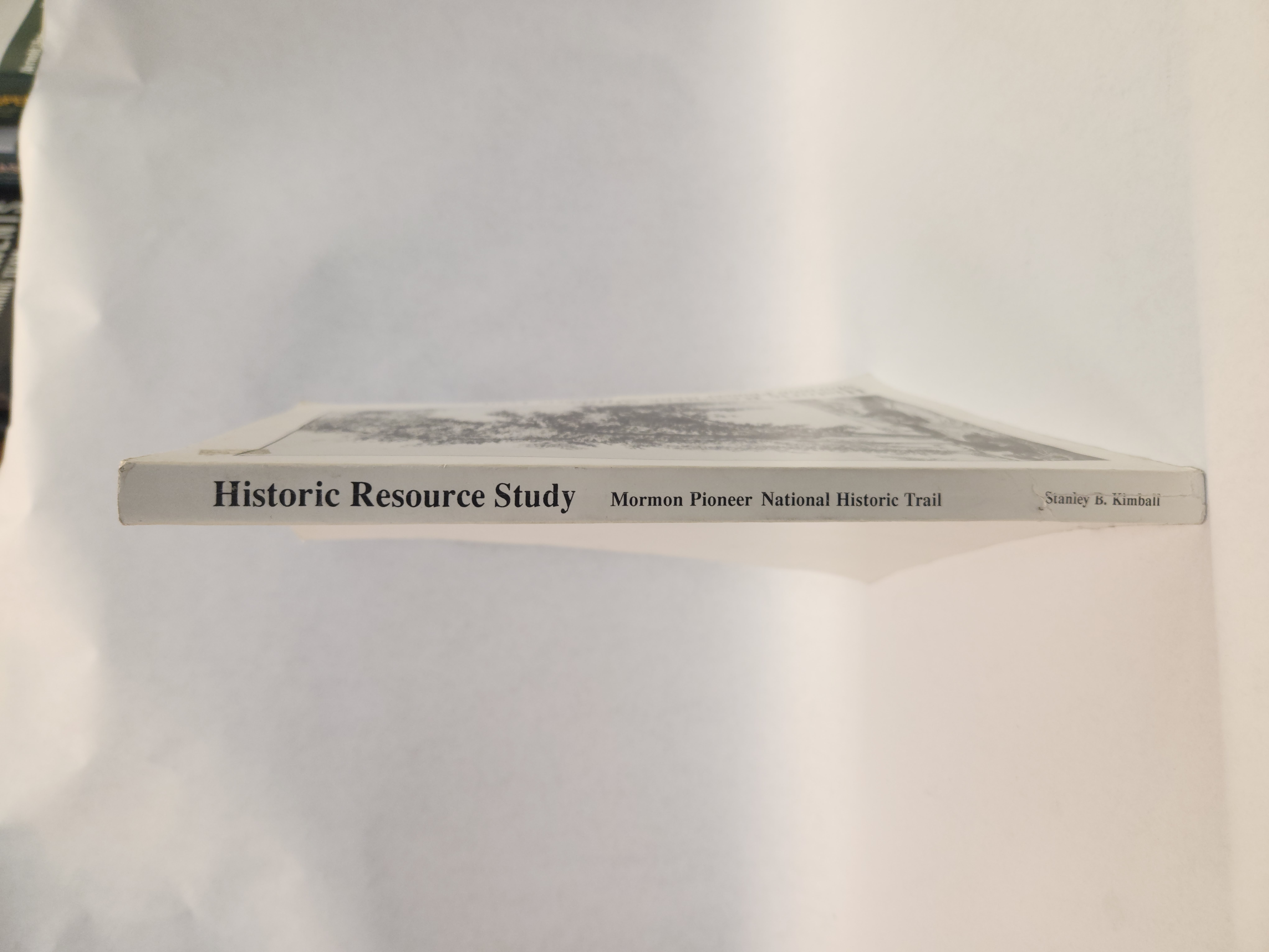 Historic Resources Study:: Mormon Pioneer National Historic Trail (1991, Paperback) No writing/marks on the pages. Binding is good. Corner and edges show some shelf wear. There is sticker residue on the top of the front cover. The back cover has some light scratchs/dents/smudge marks. Spine has a couple small tears (on bottom), rippling (on bottom), and a bend mark going vertical across it.