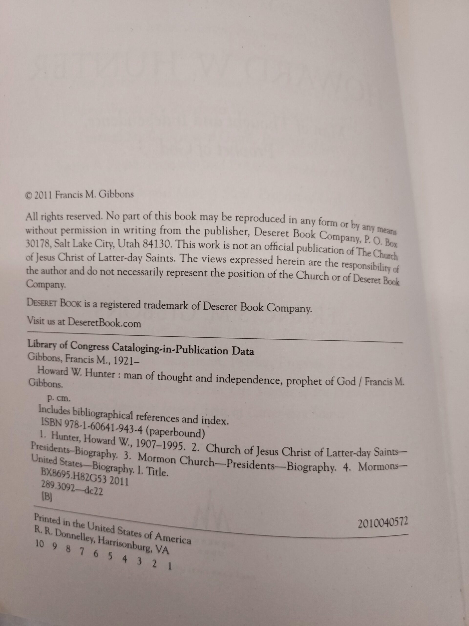 Howard W Hunter: Man of Thought and Independence, Prophet of God-Francis M. Gibbons-paperback-2011