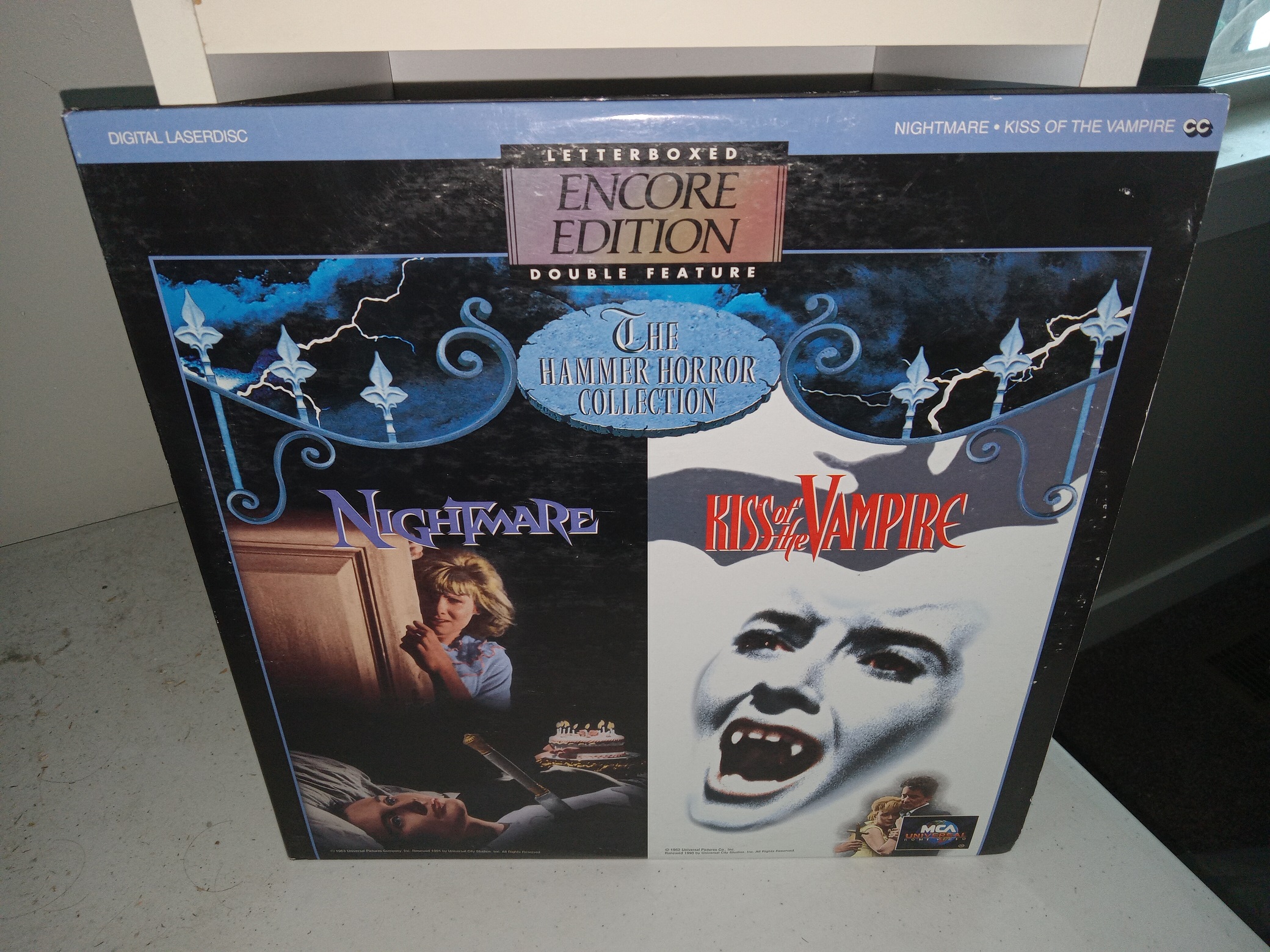 Good condition set of 2 LaserDiscs kept within their original case. The case has scuffing, fading, scratches, and a price sticker. The discs have no visible wear or marks.