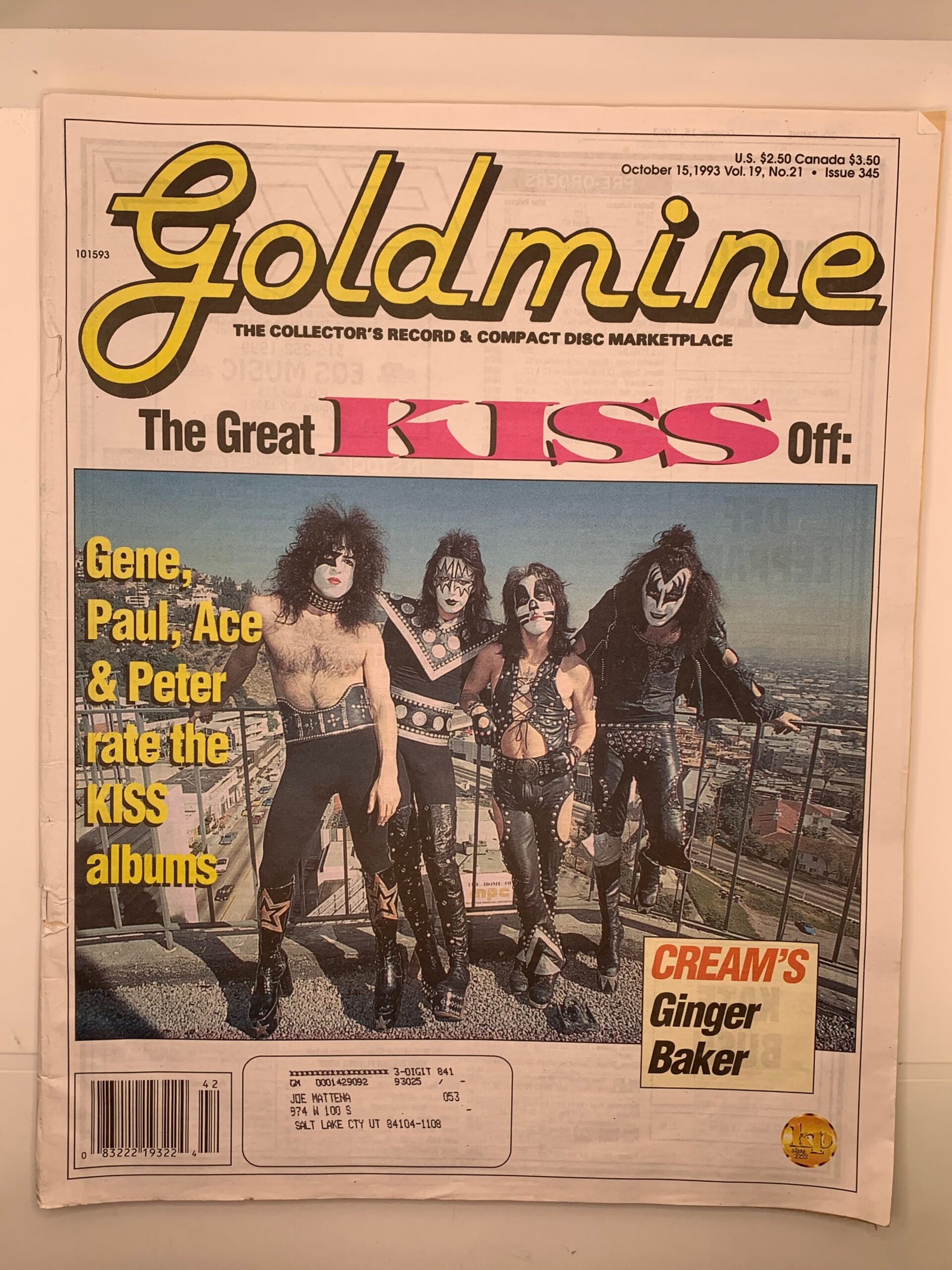1993-Goldmine: Kiss –October 15, 1993 Vol. 19 No. 21 Issue 345