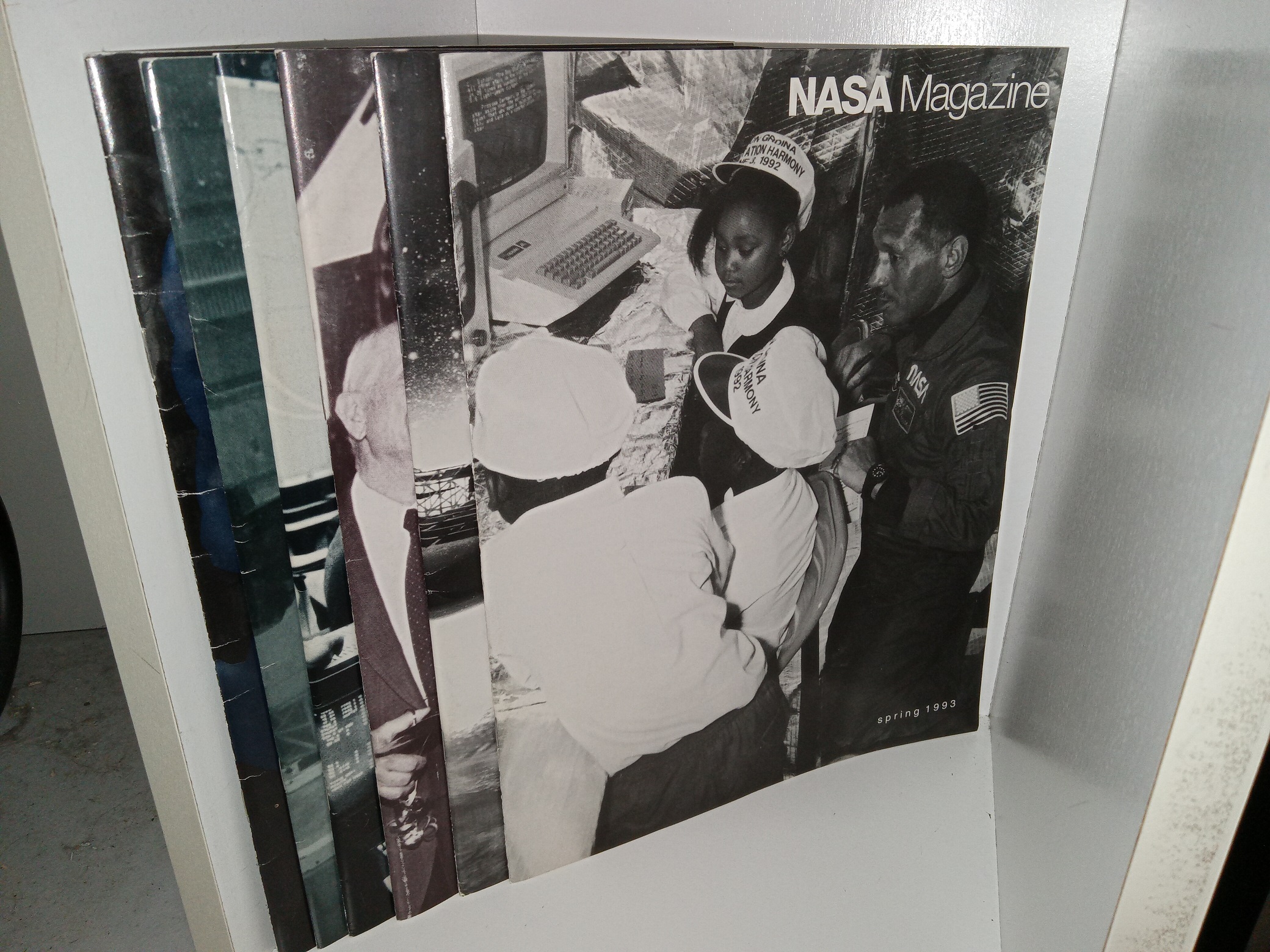 6 good condition, thin, staple-bound magazines. The covers have some scuffing, and minor wear at the corners and edges. The first page has writing in pencil. Text and illustrations throughout are clean, clear, and legible.