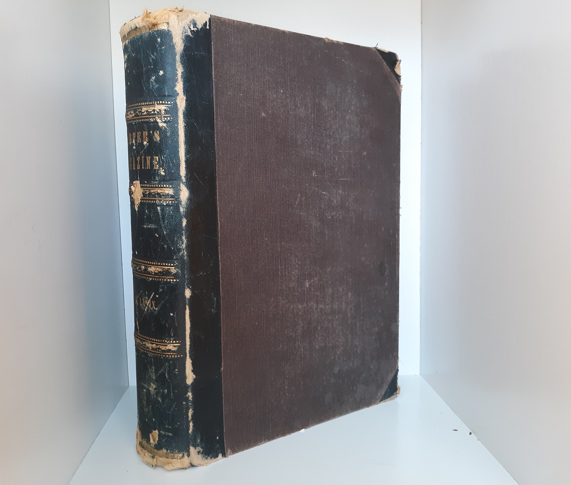 Fair condition, thick, hardcover with a black spine. The cover has scuff marks, scratches, fading, fraying, tears (especially on the spine), and some stains. The flyleaf has a stamp. Many of the pages have minor spot stains, some minor tears, or minor fraying. The second flyleaf has some writing in pencil and eraser marks…………………………..v1 Bx1287D