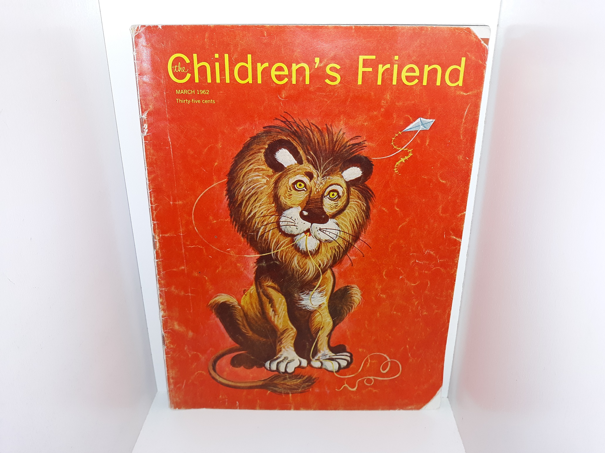 Fair condition, thin, staple-bound magazine. The cover has heavy scuffing, pieces torn off, marker marks, fading, scratches, and tears. The corners of some pages have been torn off or creased. The first page has writing in pencil and eraser marks. Pages throughout have crayon marks.