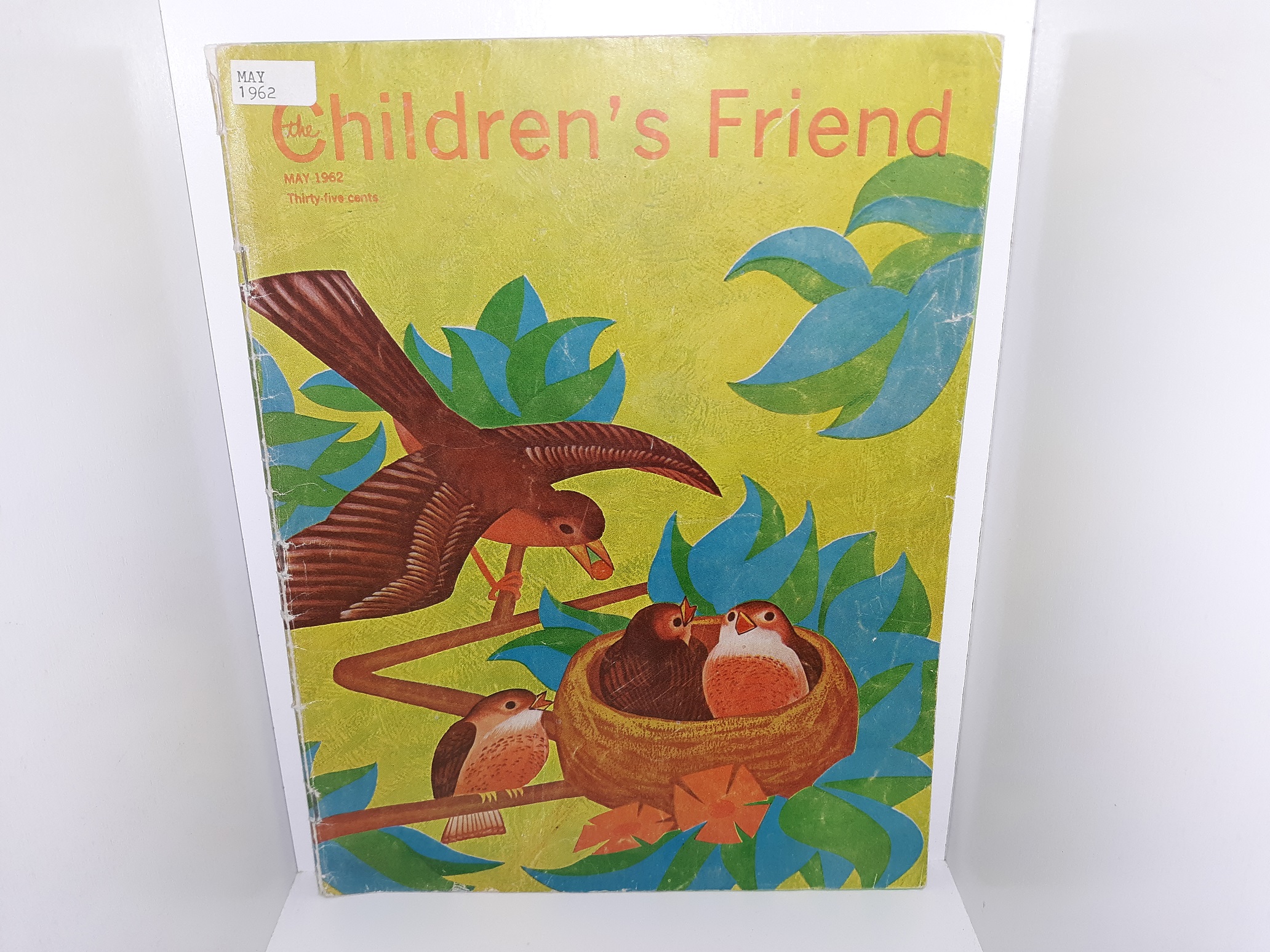 Fair condition, thin, staple-bound magazine. The cover has tears, a sticker, a mailing stamp, writing in pen, a large marker scribble, and wrinkling. The first page has writing in pencil. Text and illustrations throughout are clean, clear, and legible.