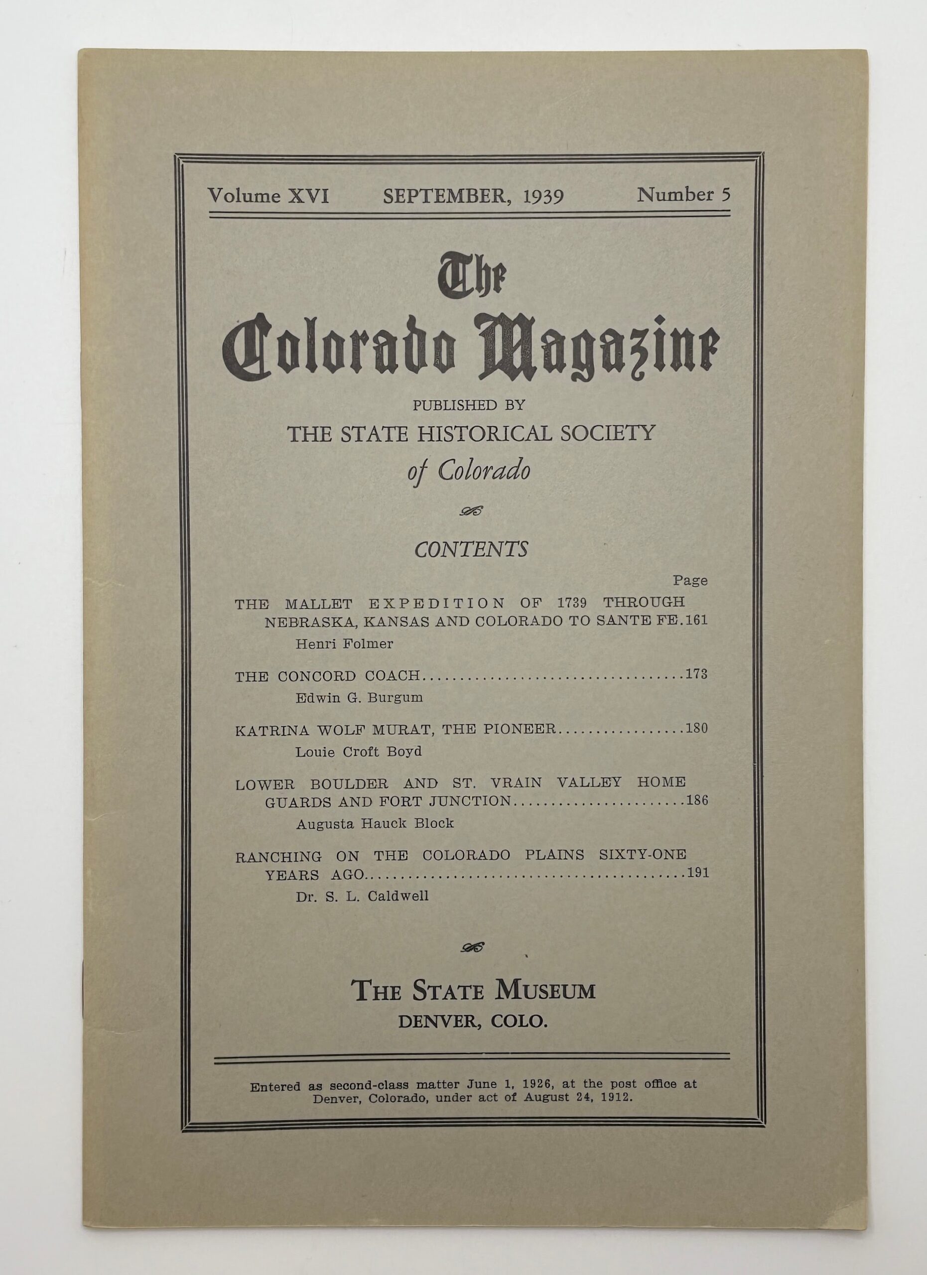The Colorado magazine Vol XVI No. 5 September, 1939