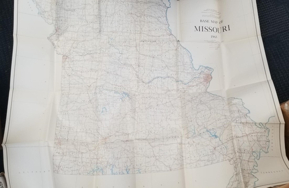 1965 — Base Map of Missouri — Folds out to 4 Feet Wide and 3.5 Feet Tall