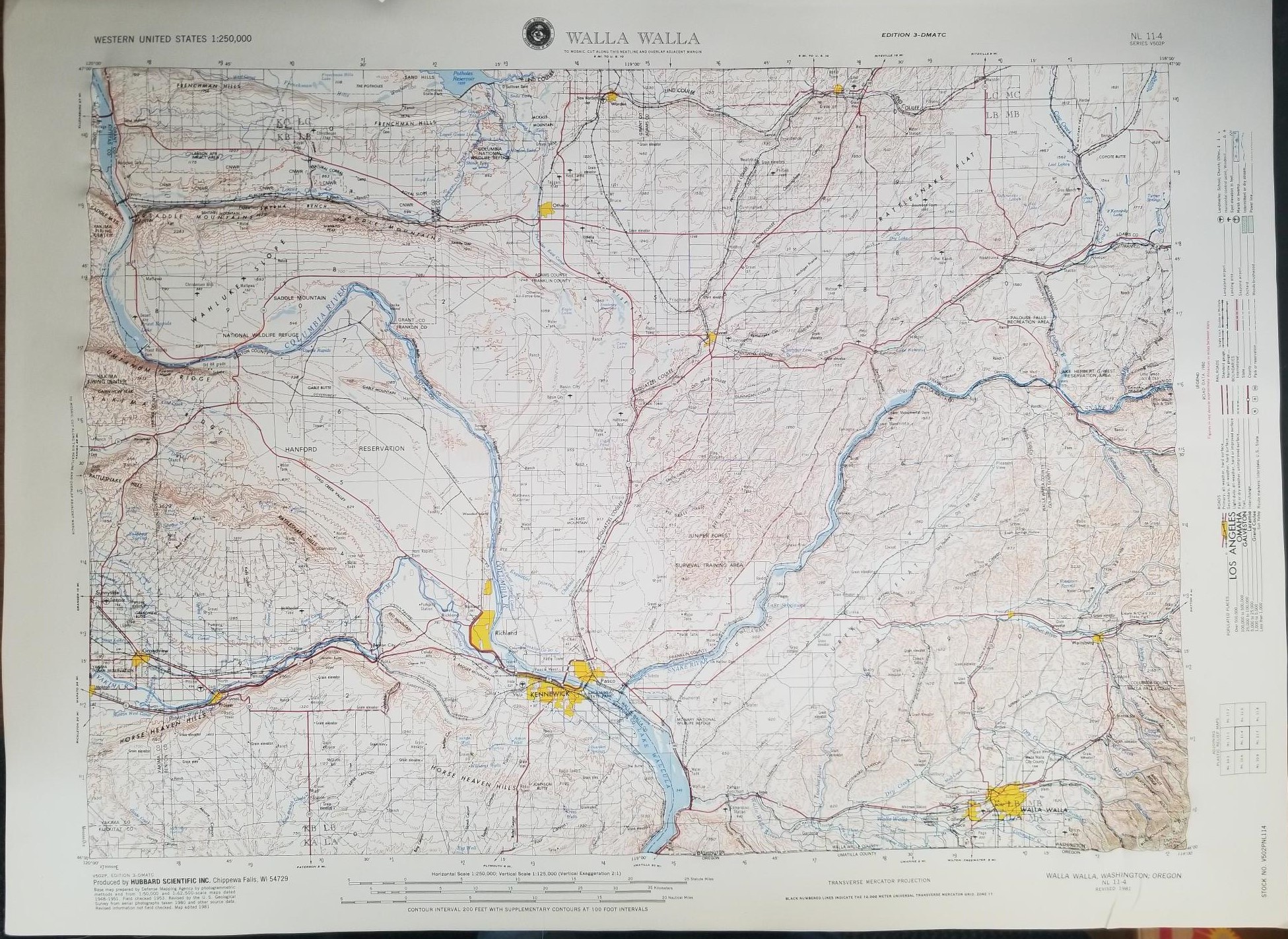 Walla Walla, Washington (Oregon) NL 11-4 Revised 1981 — Contour Map — Plastic — Large Size