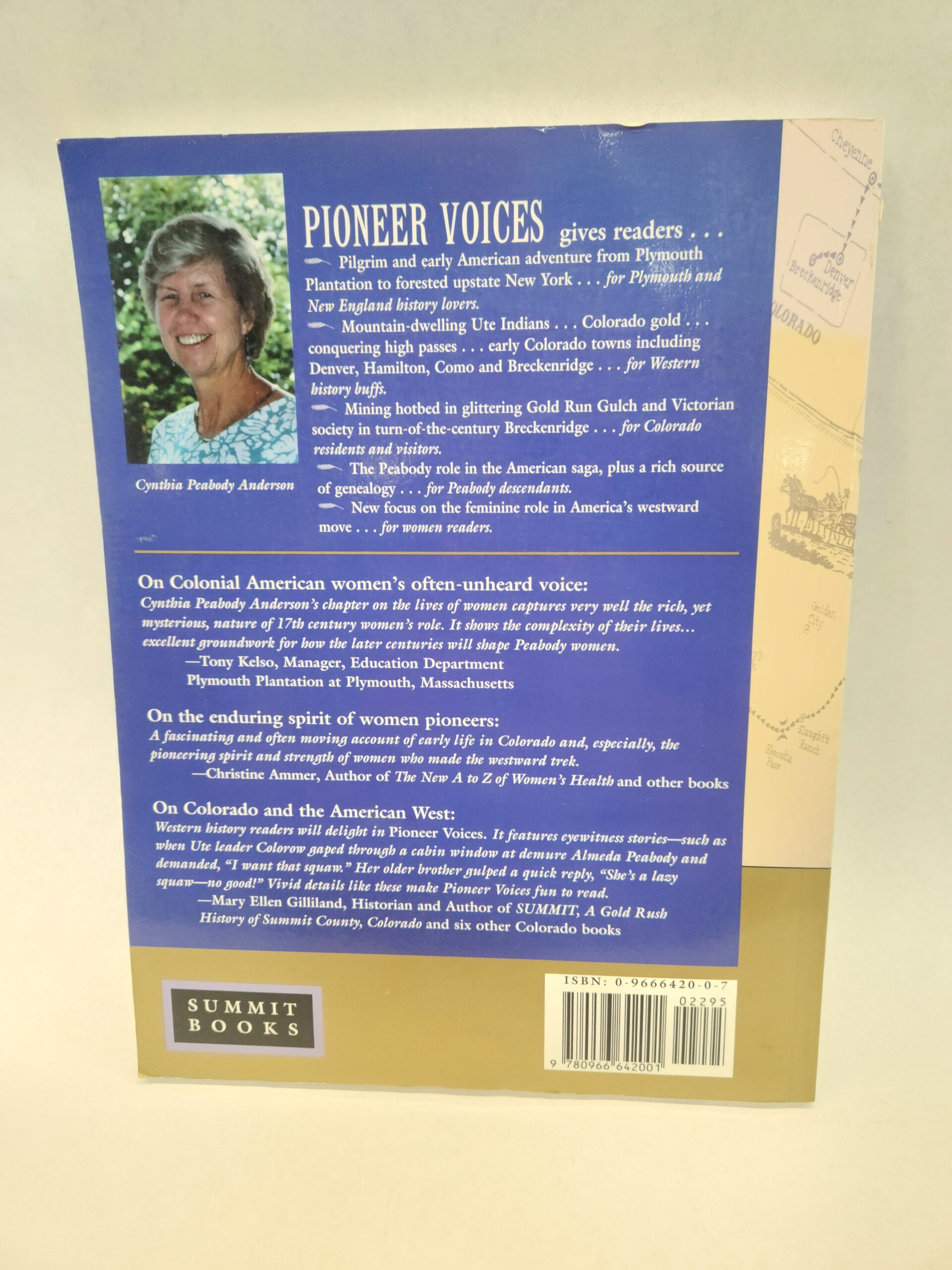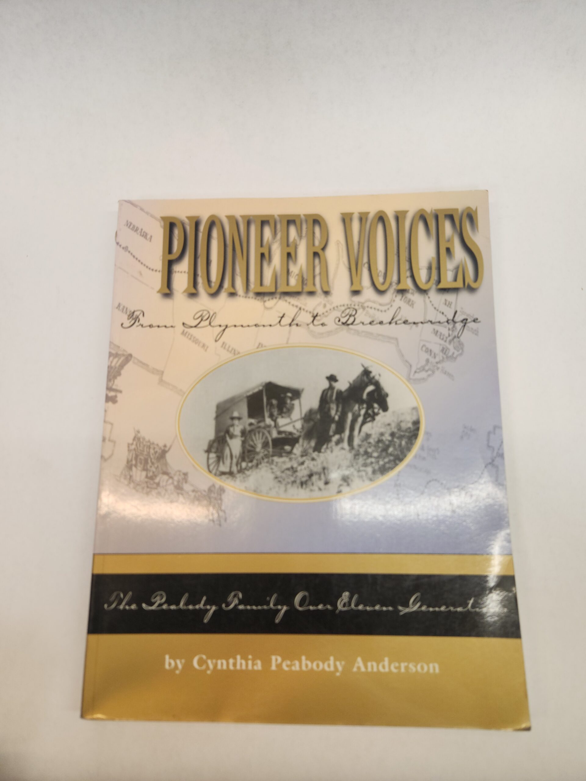 Pioneer Voices:: From Plymouth to Breckenridge, The Peabody Family Over Eleven Generations (1999, Paperback) Binding is good. Corner and edges show little shelf wear. White circular sticker on top of spine. No marks/writing on pages.