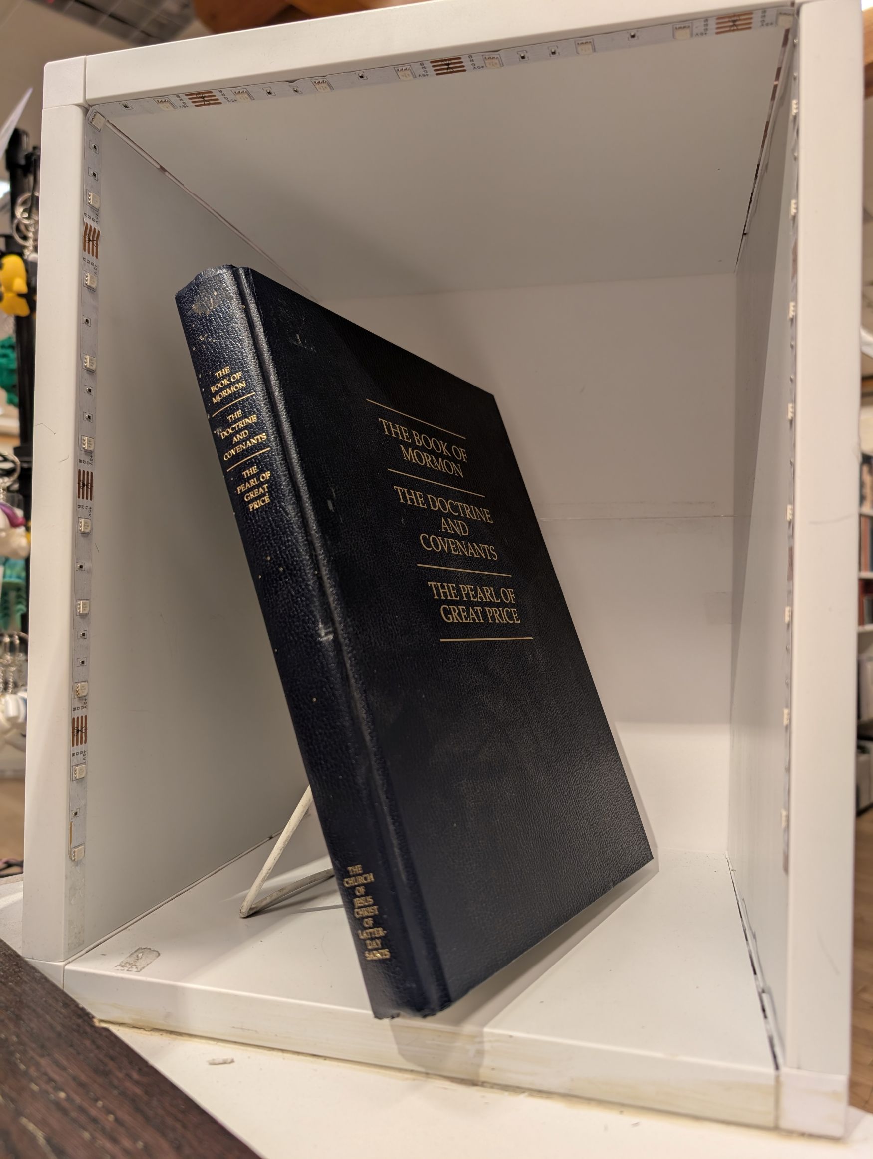Sticker residue and scuffing on front. Stain on spine and top and bottom are folded and torn. Back cover has a store sticker and small stains. First page has sticker from store inside. Text is clear and condition is good.