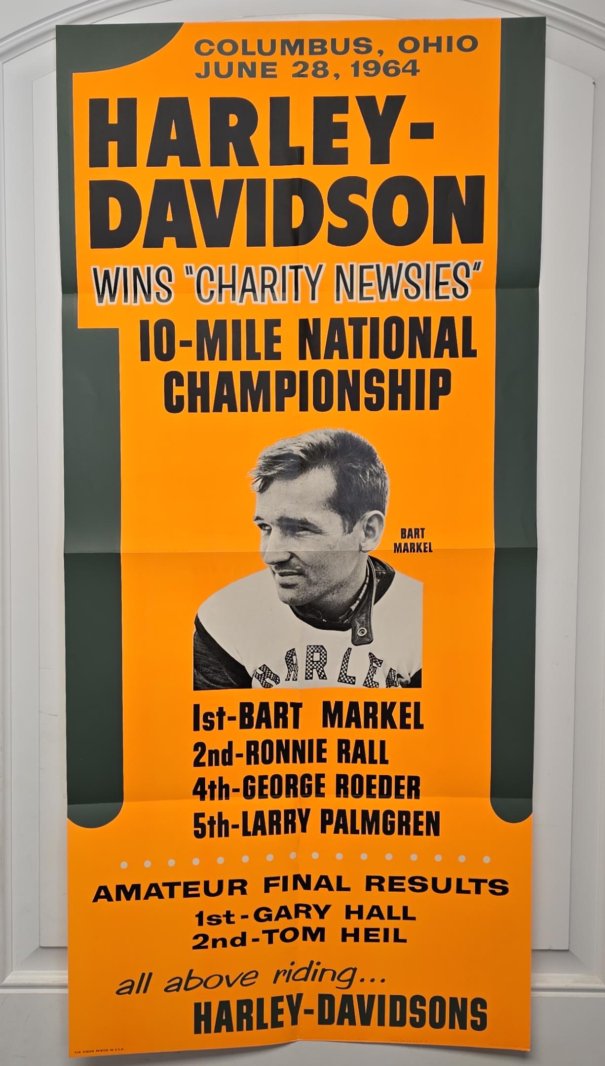 36″ x 17″ — Harley-Davidson Poster — Columbus, Ohio June 28, 1964 Harley-Davidsons Wins Charity Newsies 10-Mile National Championship