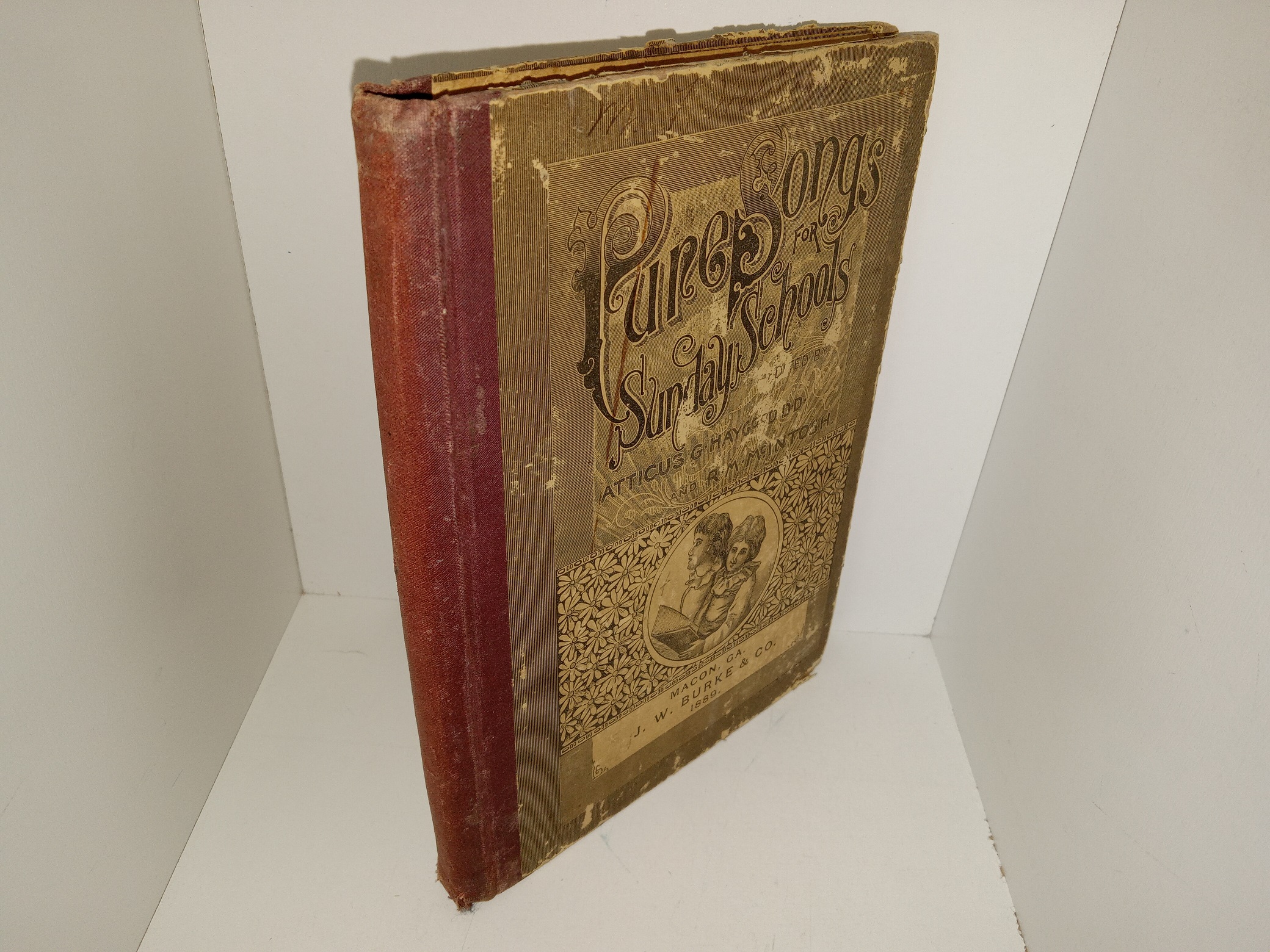 Fair condition hardcover with a burgundy spine, and no dust jacket. The cover has heavy scuffing, fading, some pieces torn off, tears, and fraying. The spine and front cover are detached from the pages, but still connected by the back cover. Some pages have stains, creases or wrinkling. The inside front cover and front flyleaf has writing in pencil and eraser marks.