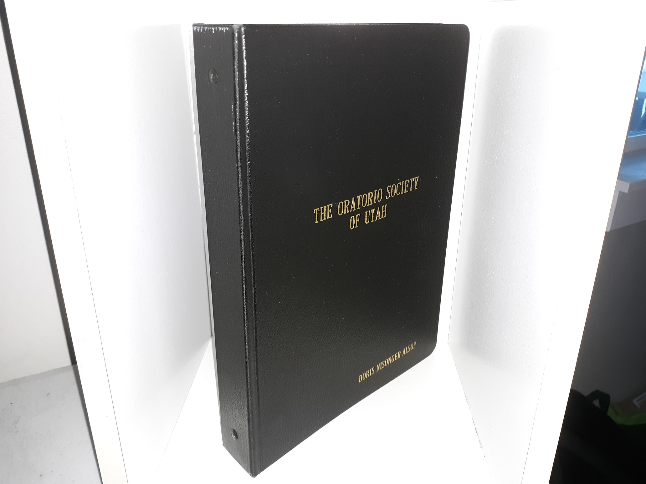 Fair condition, large, black book bound in a binder. The front cover has the name of a previous owner engraved upon it. There are notes, marks and highlighting written throughout the book in pen, pencil, and marker. Some pages have small stains. The first page has a stamp.