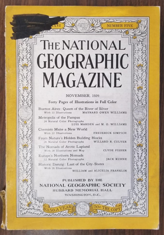 / National Geographic Magazine — November 1939 — Single Issue Magazine — Volume LXXVI, Number Five — No Map / Just the Magazine!