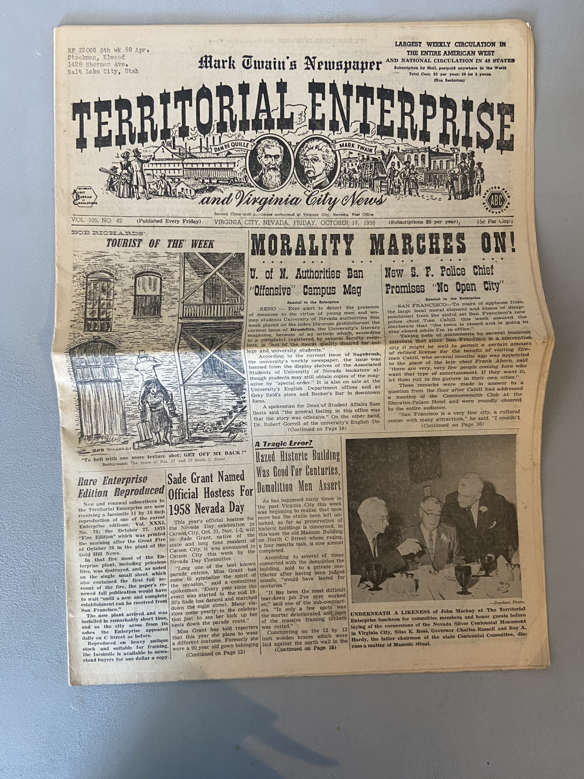 Territorial Enterprise Vol 105 No 42 October 17, 1958