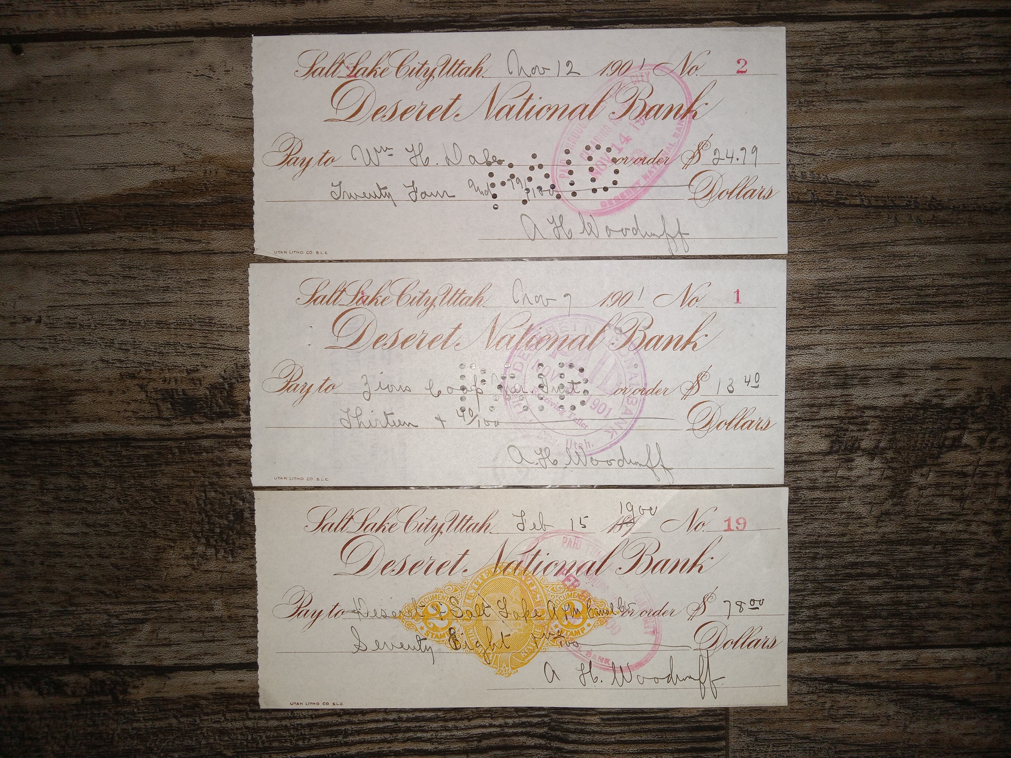 3 Checks from Deseret National Bank Dated for 1900, and 1901