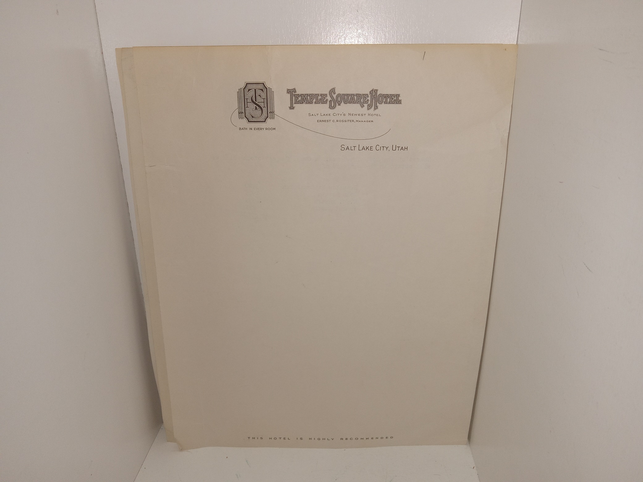 3 fair condition, tan sheets of stationery. The stationery has yellowing, tears, creases, stains, wrinkling, writing and marks in pencil, and eraser marks, while there are notes typed onto the back.