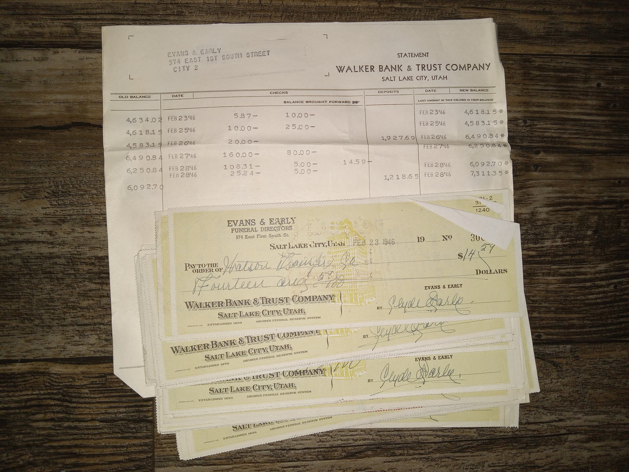 Evans & Early Funeral Homes Bundle of Old Checks
