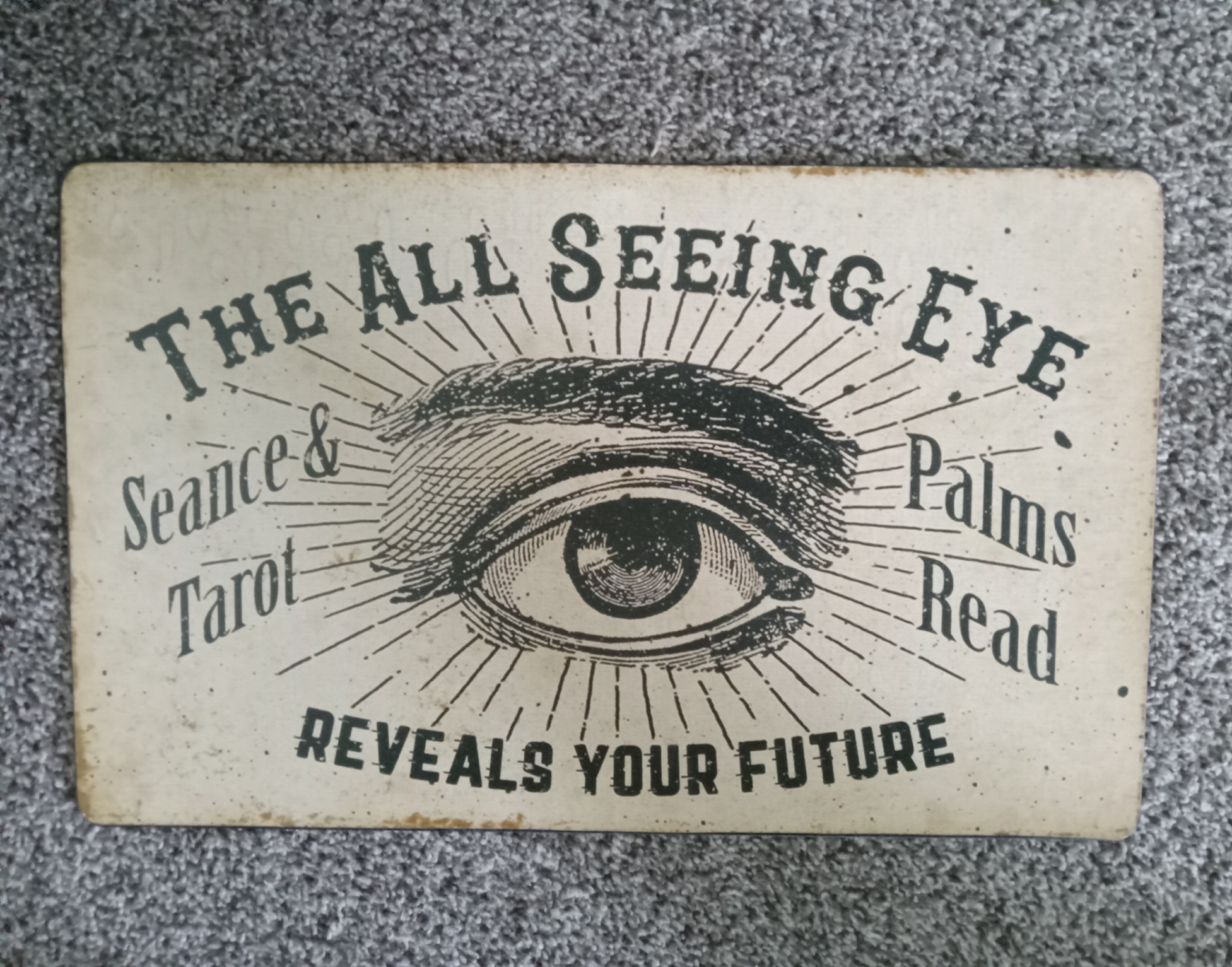 Good condition, oblong, metal sign. The back of the sign has some bubbling, scuffing and a couple price stickers, but the front is in great condition.