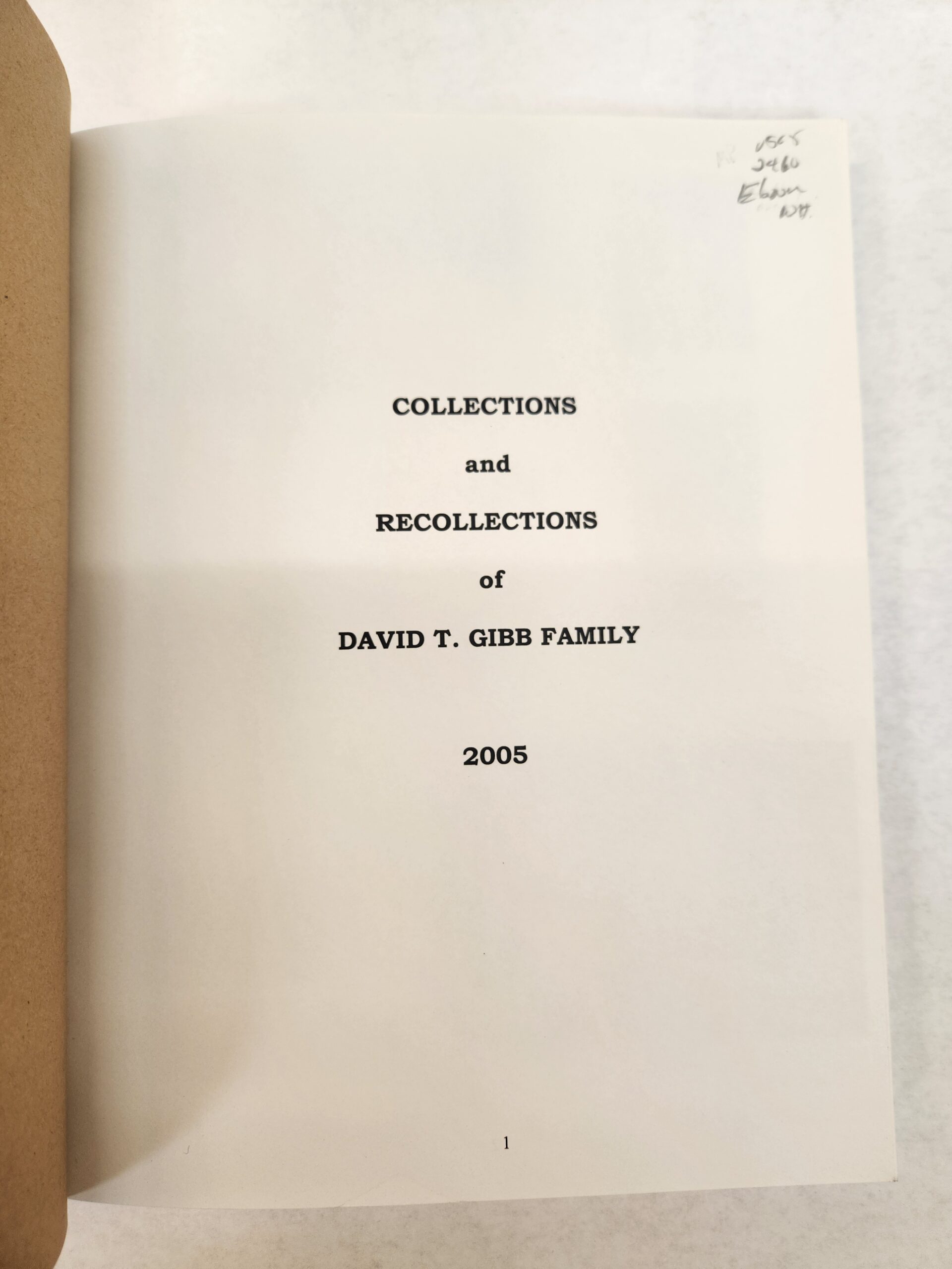 Collections ans Recollections of the David T. Gibb Family:: 2005 (2005, Paperback) No markings/writing on pages. Corners and edges show minimal shelf wear. Front cover has some sticker residue in the upper left corner and a smudge mark mid right side. Spine has a little wrinkling and a smudge mark. Binding is good.