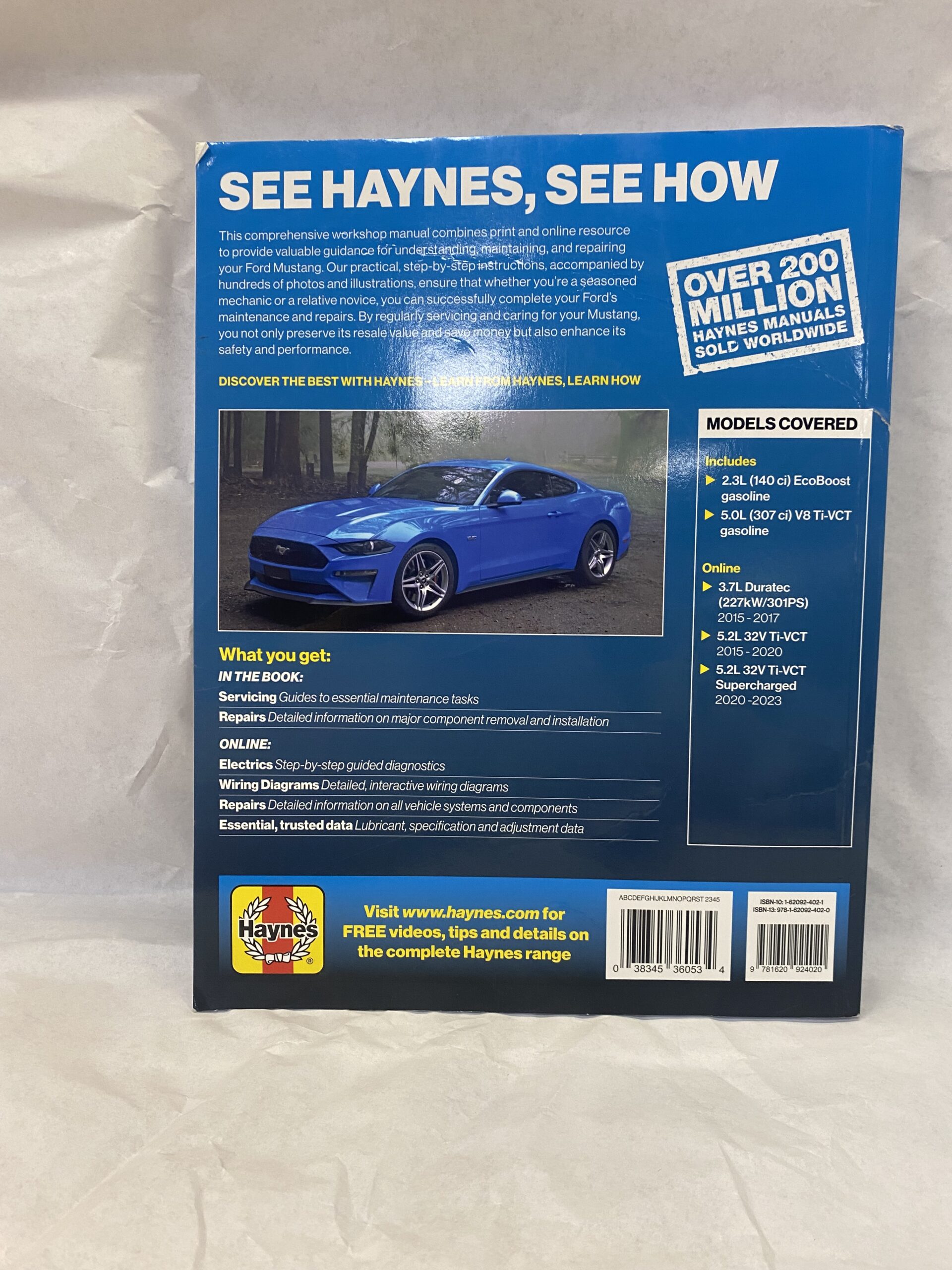 Haynes Repair Manual, Ford Mustang 2015 thru 2023 from the Haynes Company. Paperback, 2023.